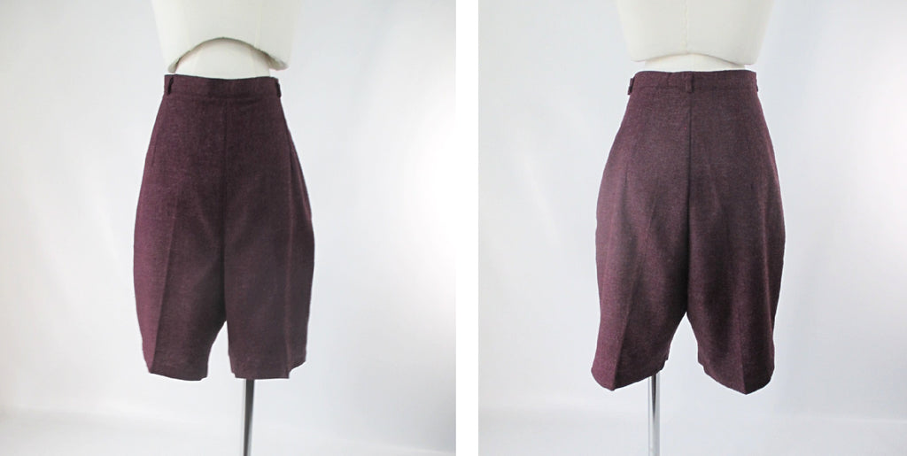 Vintage 60s Burgundy Wool Tweed Bermuda Shorts M
