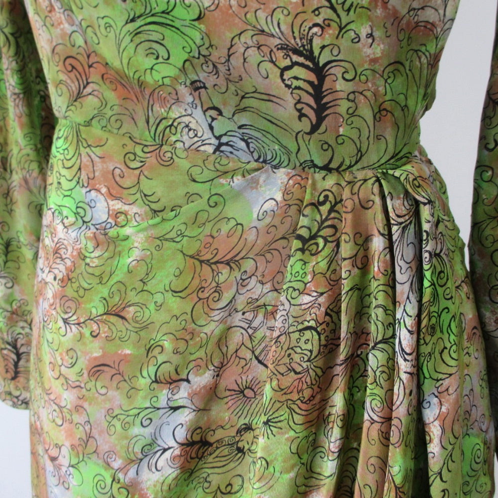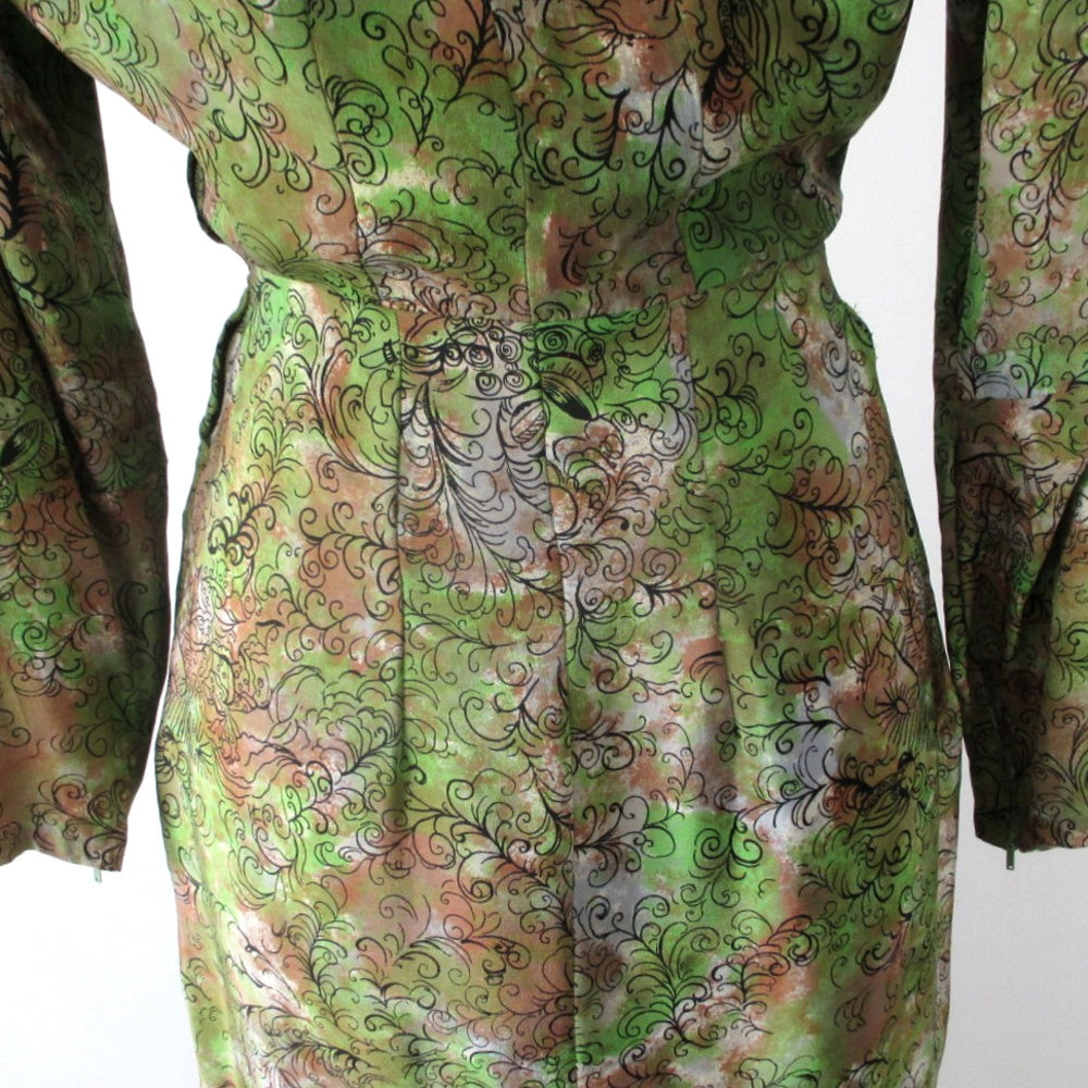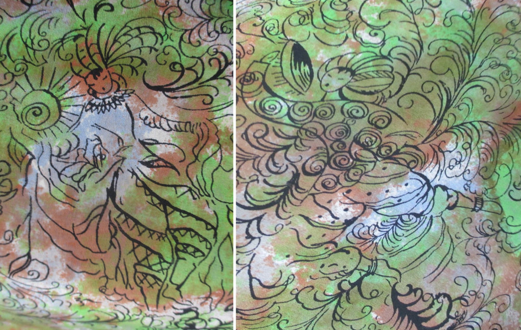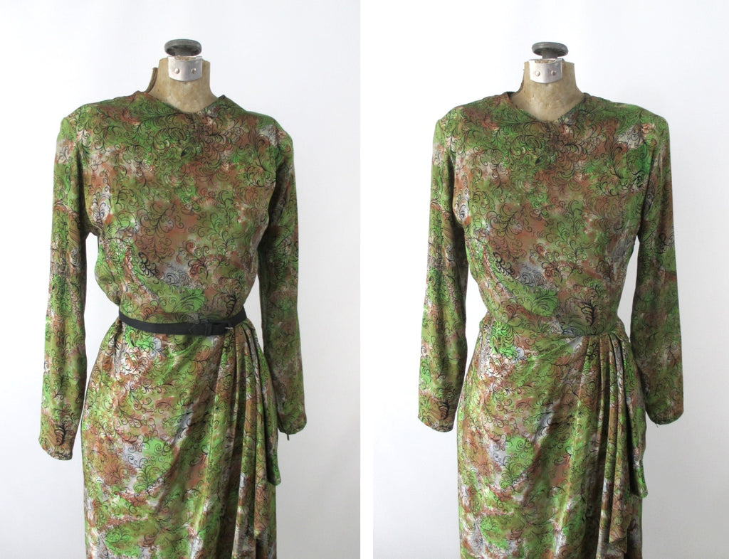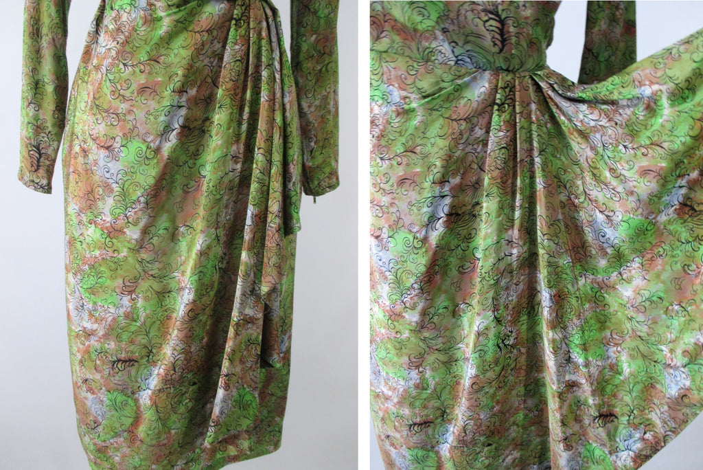 Vintage 40s Novelty Print Sarong Skirt Dress S