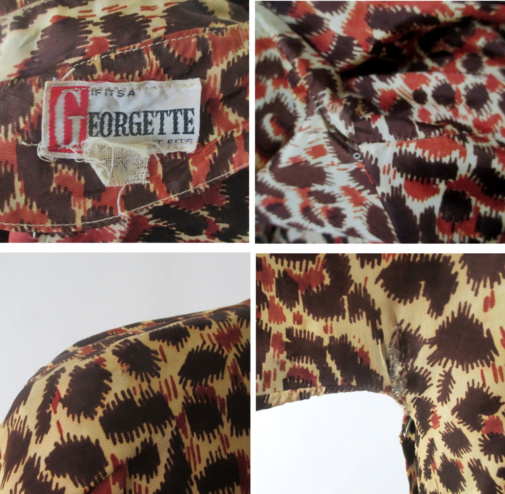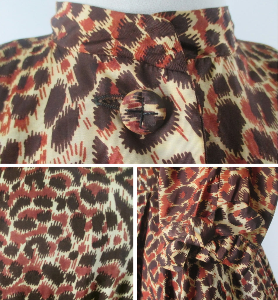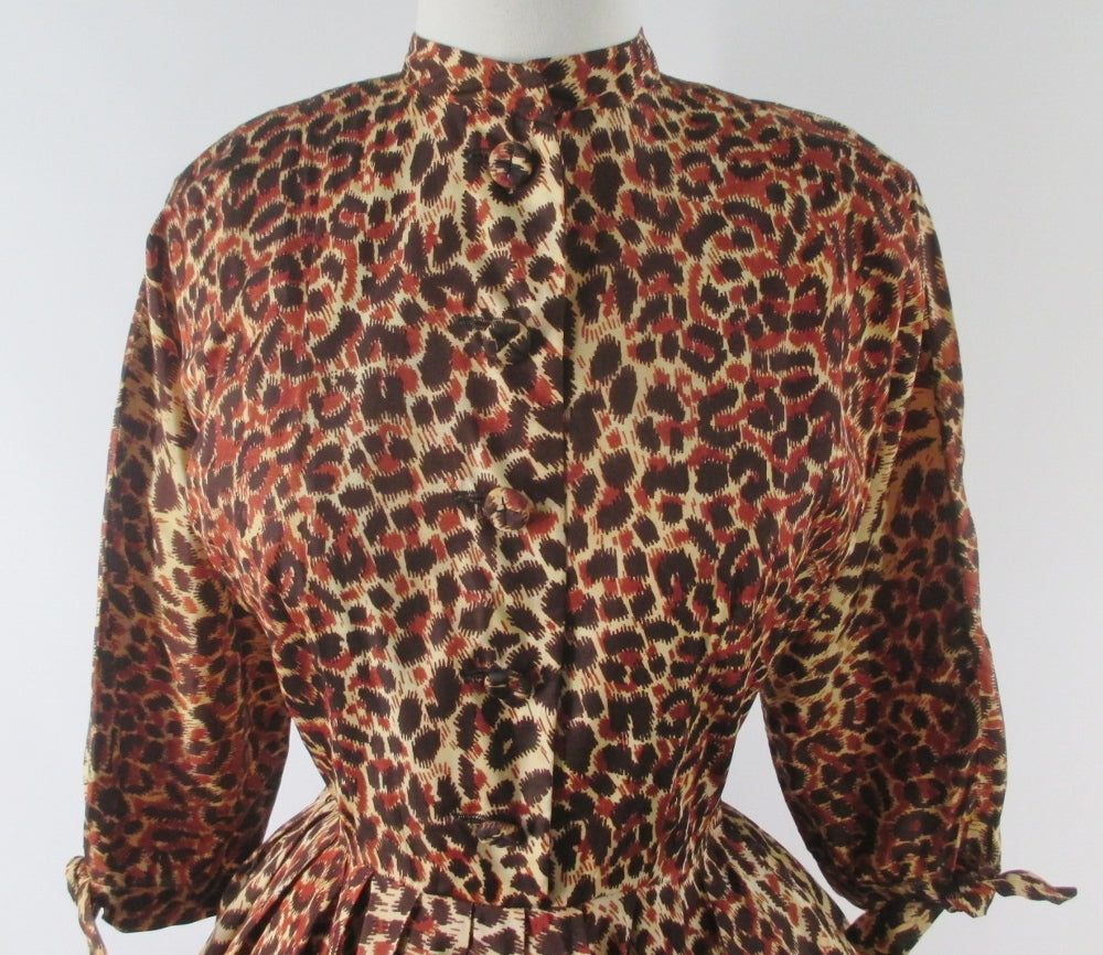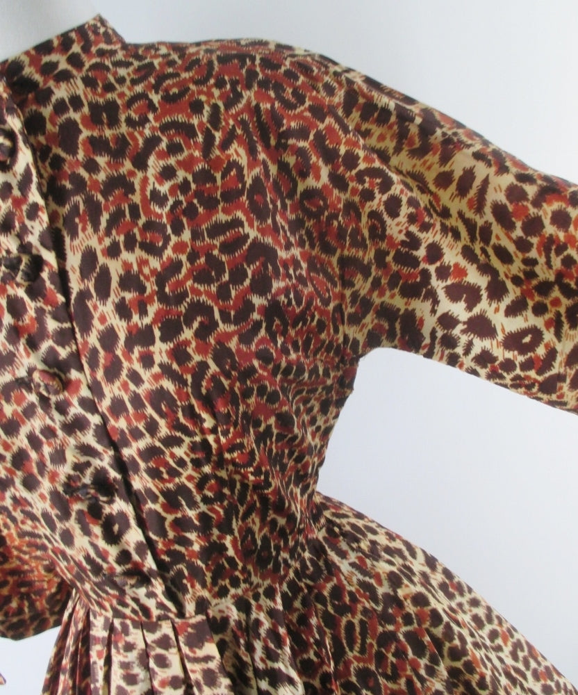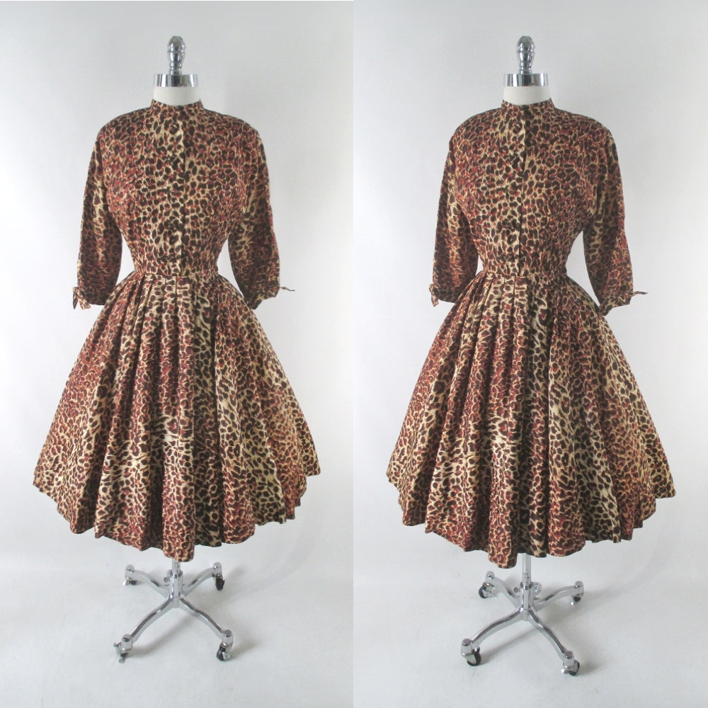 Vintage 50s Leopard Print Full Skirt Party Dress S