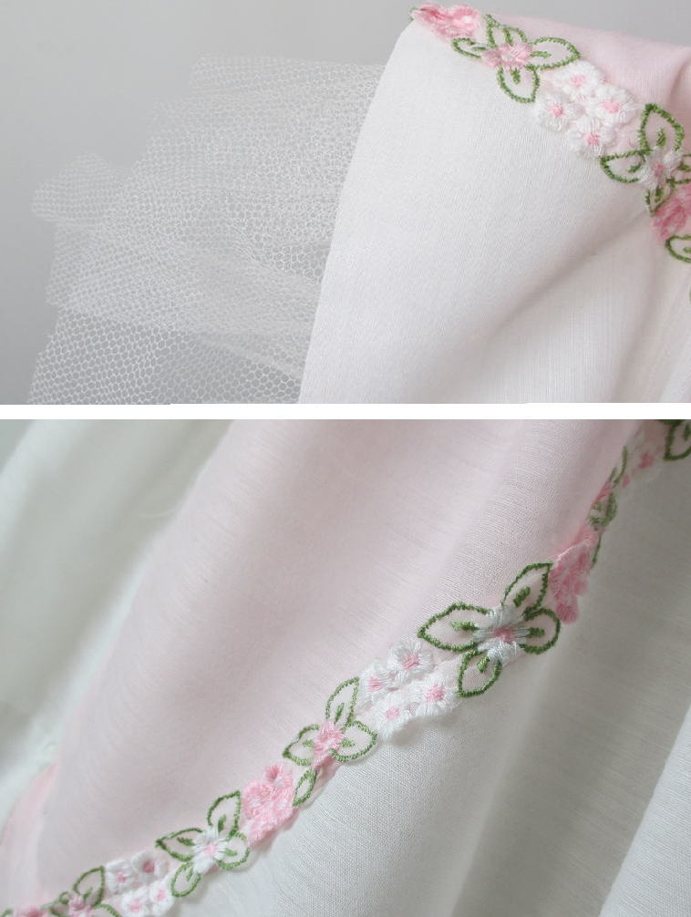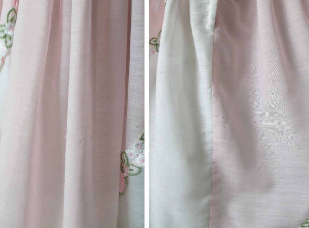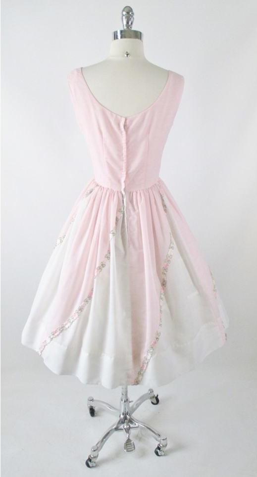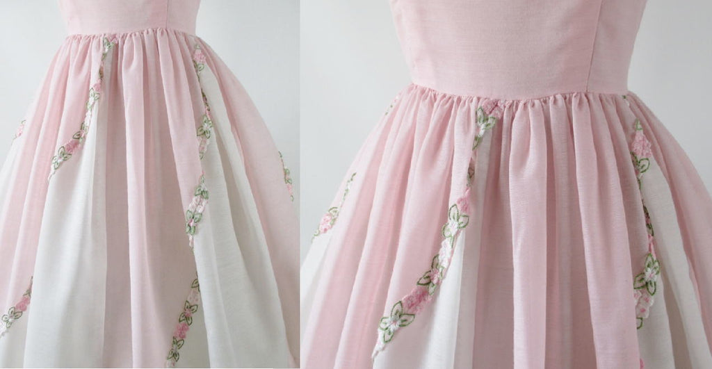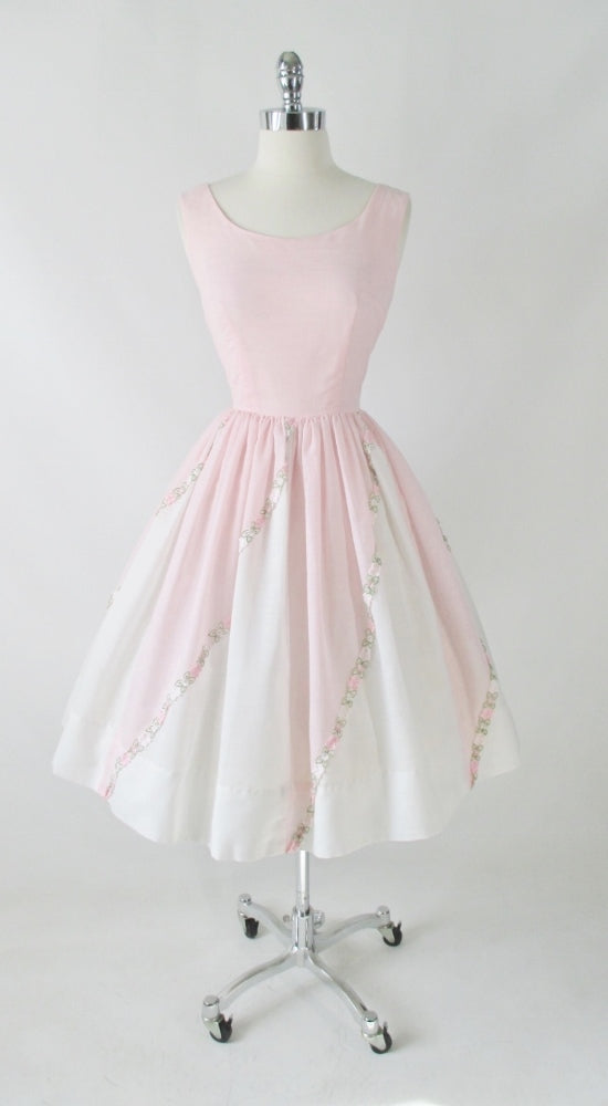 Vintage 50's Pink & White Embroidered Flower Fit & Flair Party Dress S
