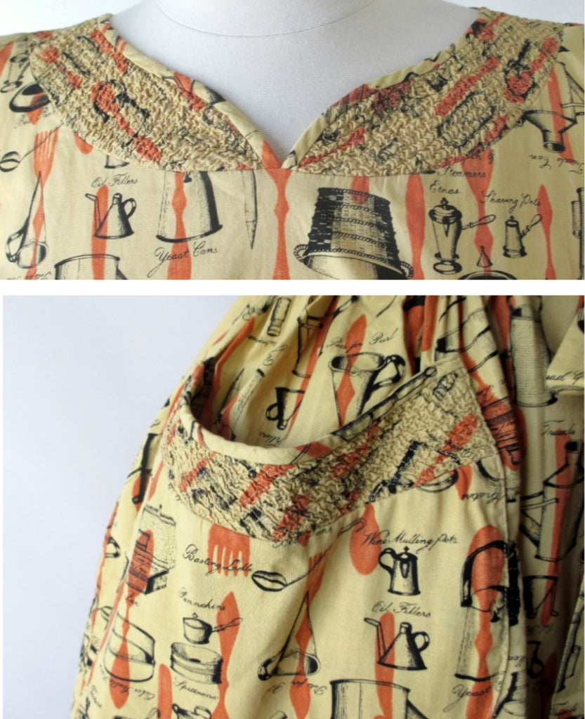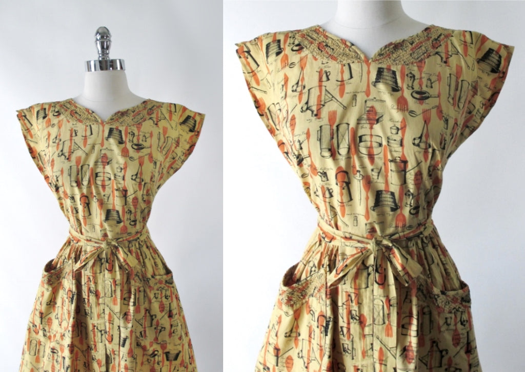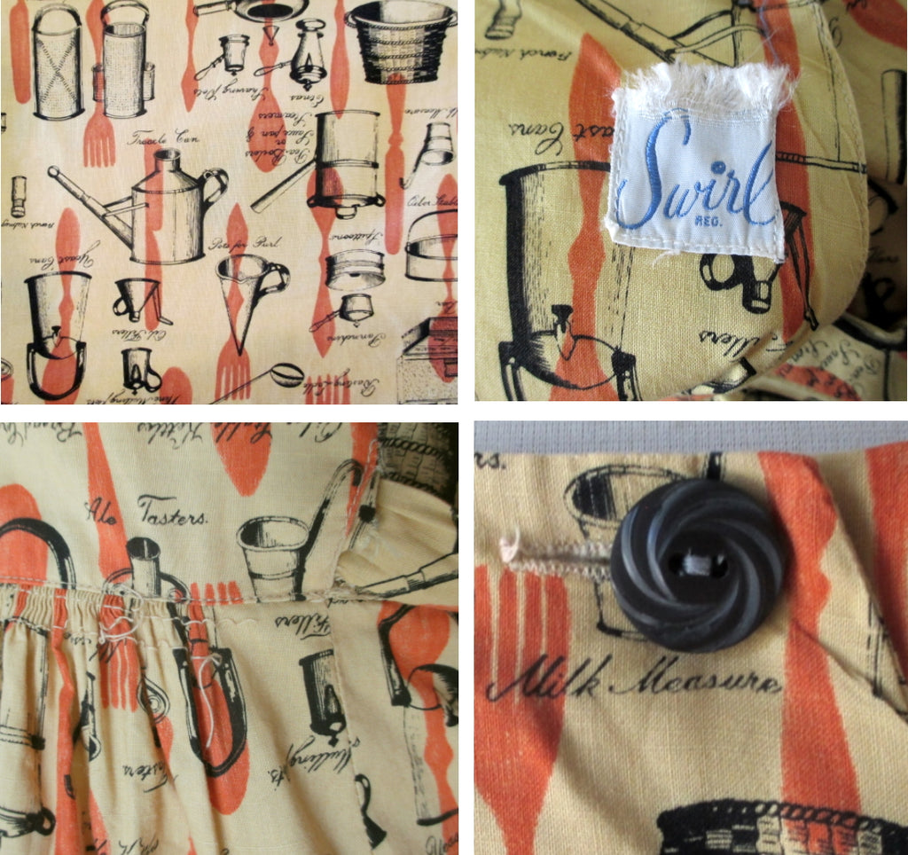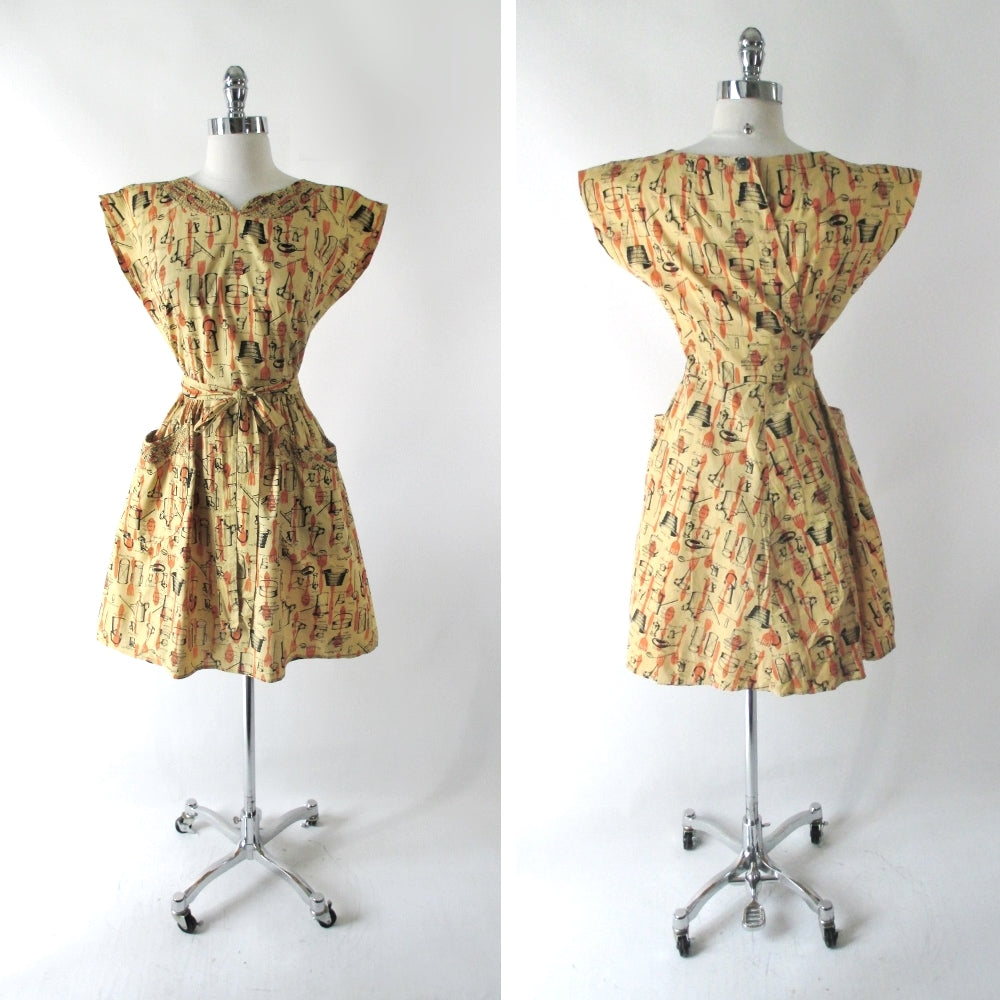 Vintage 50's Swirl Wrap Dress Kitchenware Novelty Print M