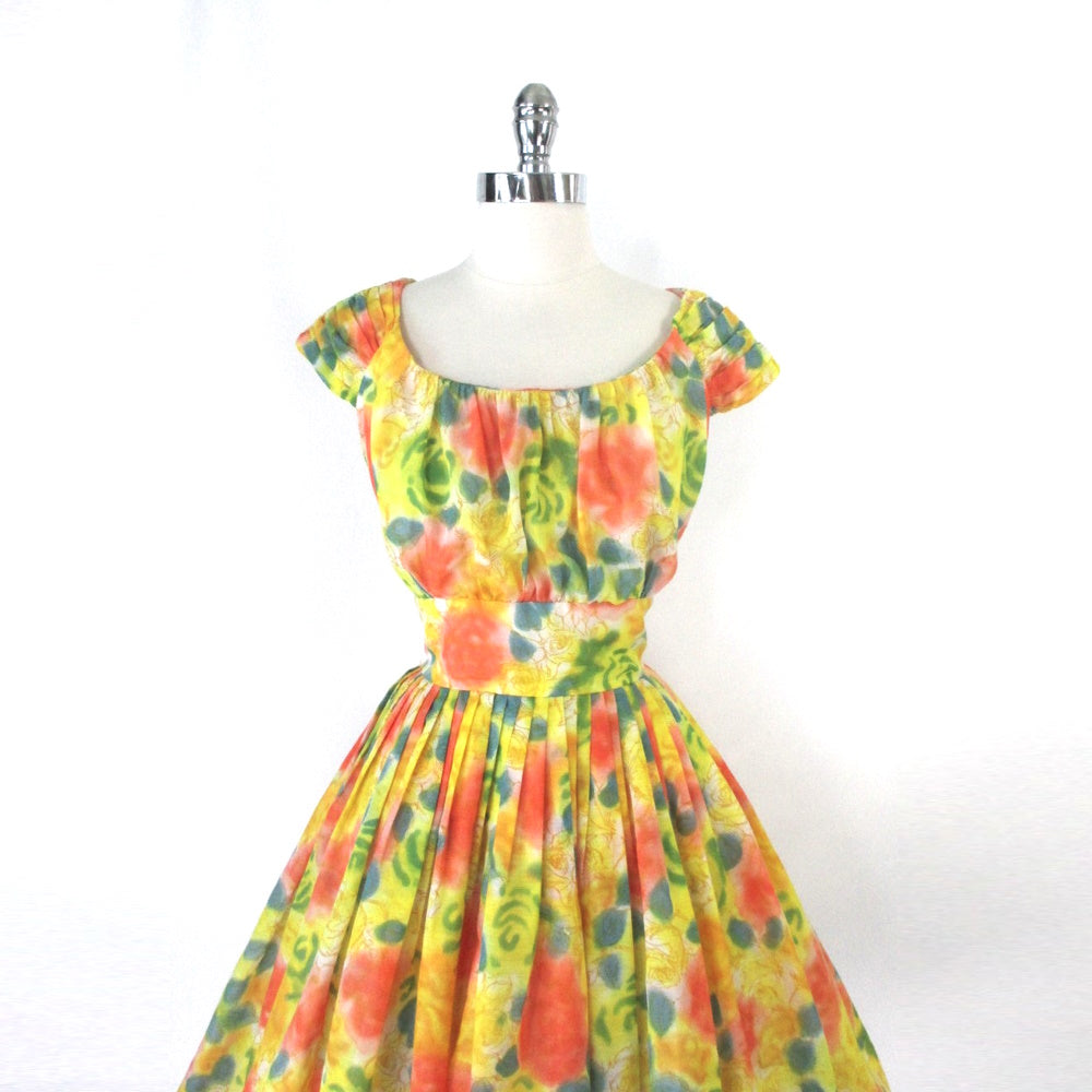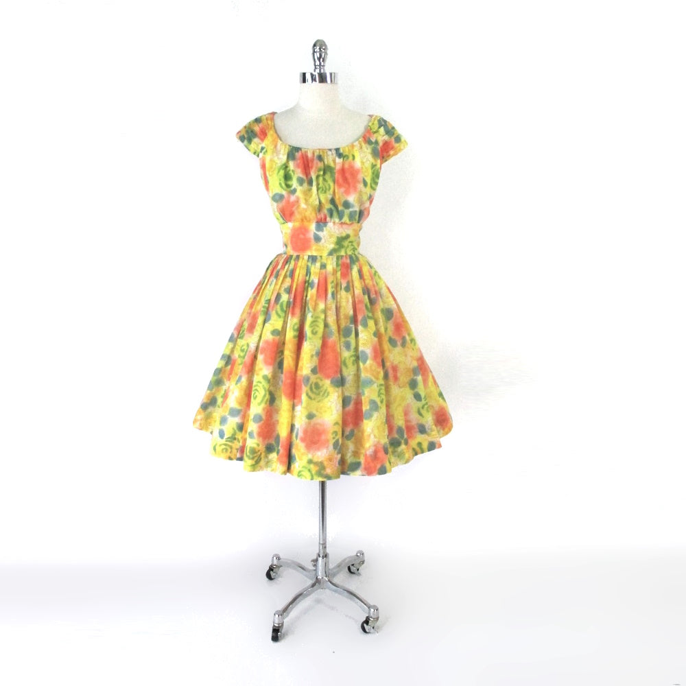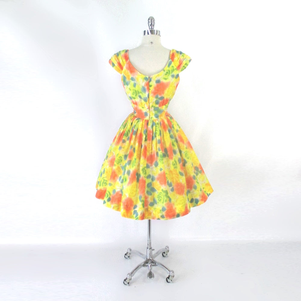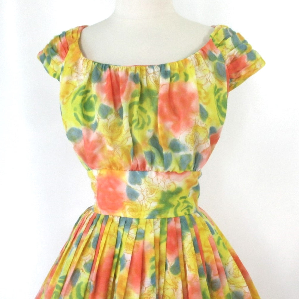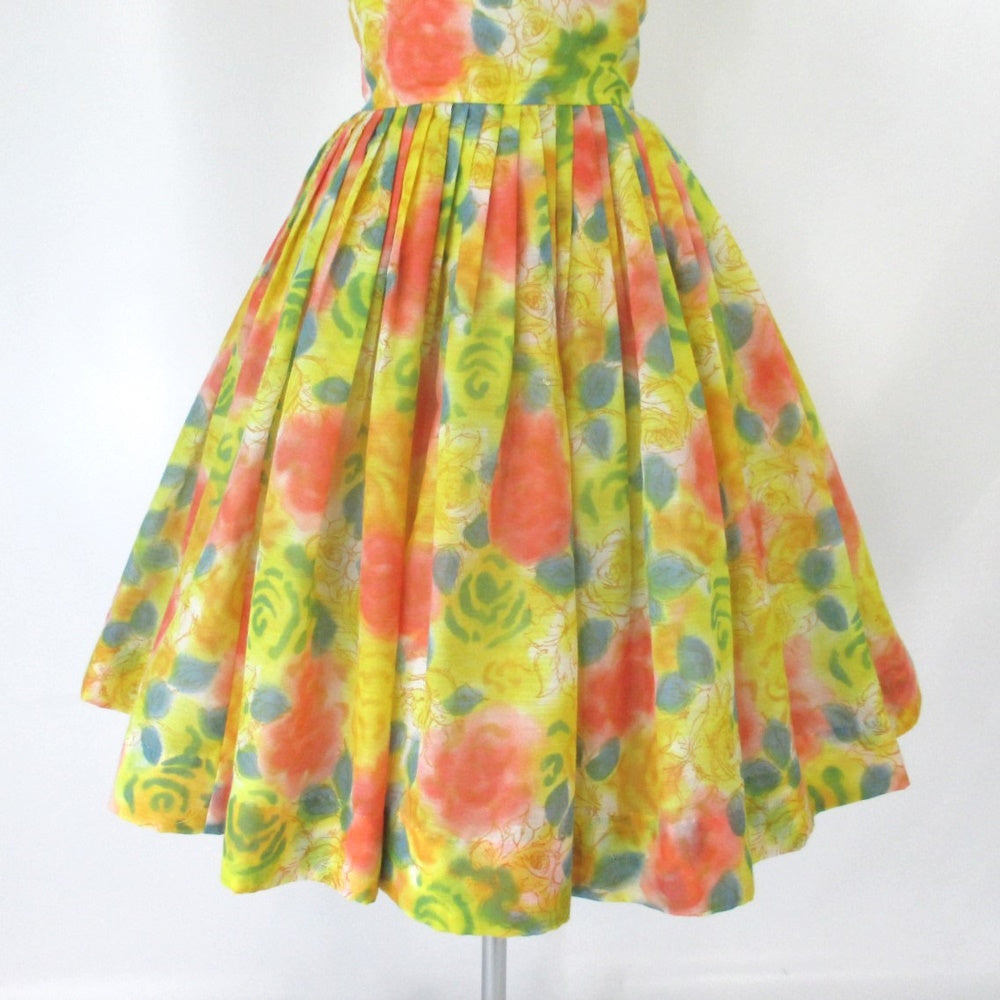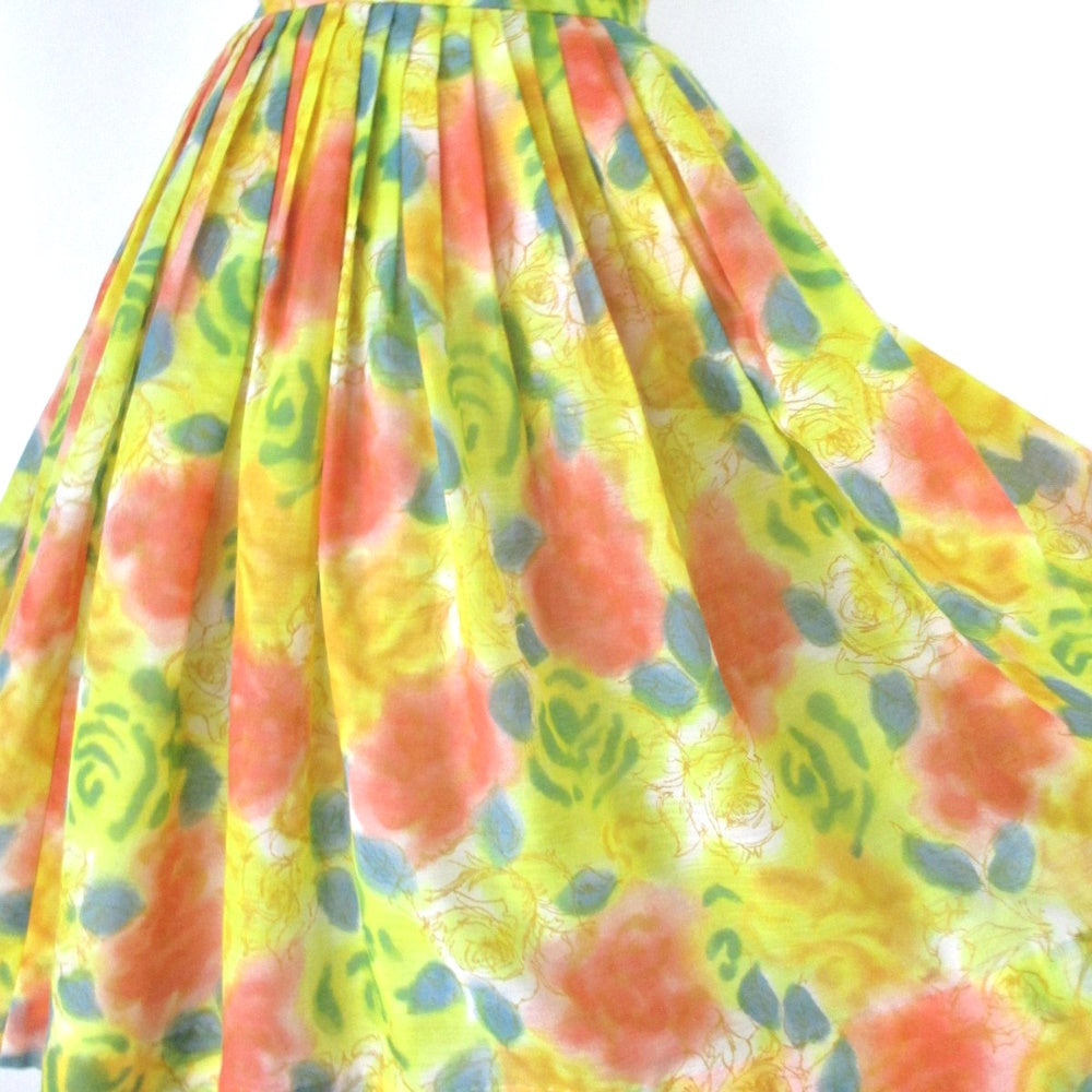 Vintage 50s Vibrant Roses Full Skirt Party Dress M