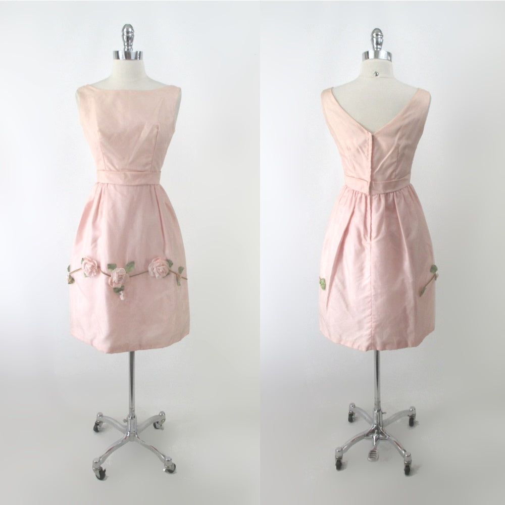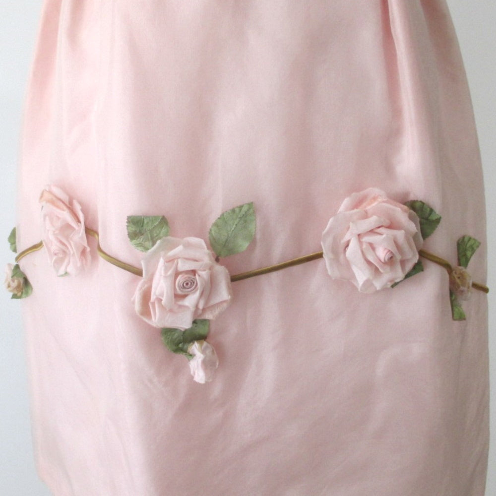 Vintage 60s 3D Pink Roses Full Skirt Party Dress S
