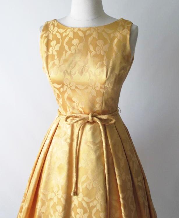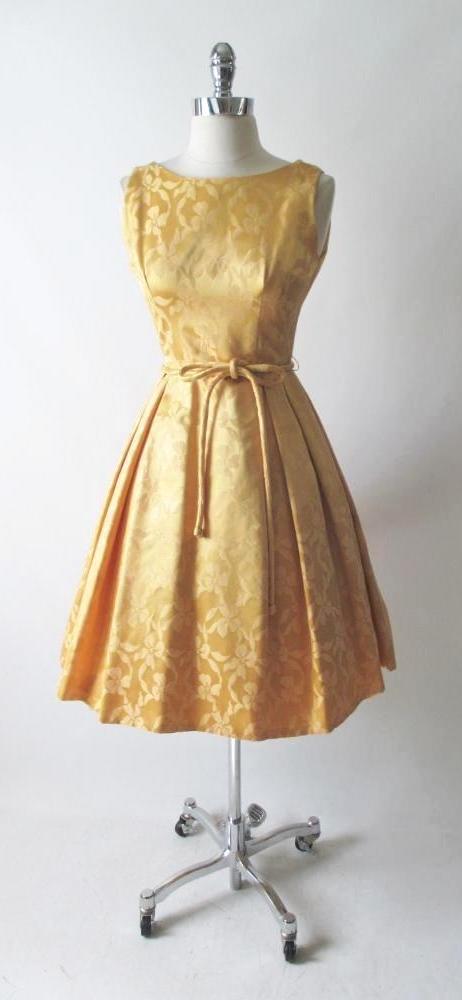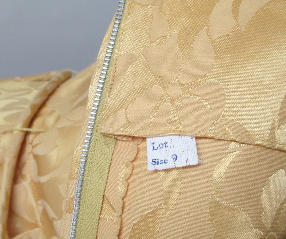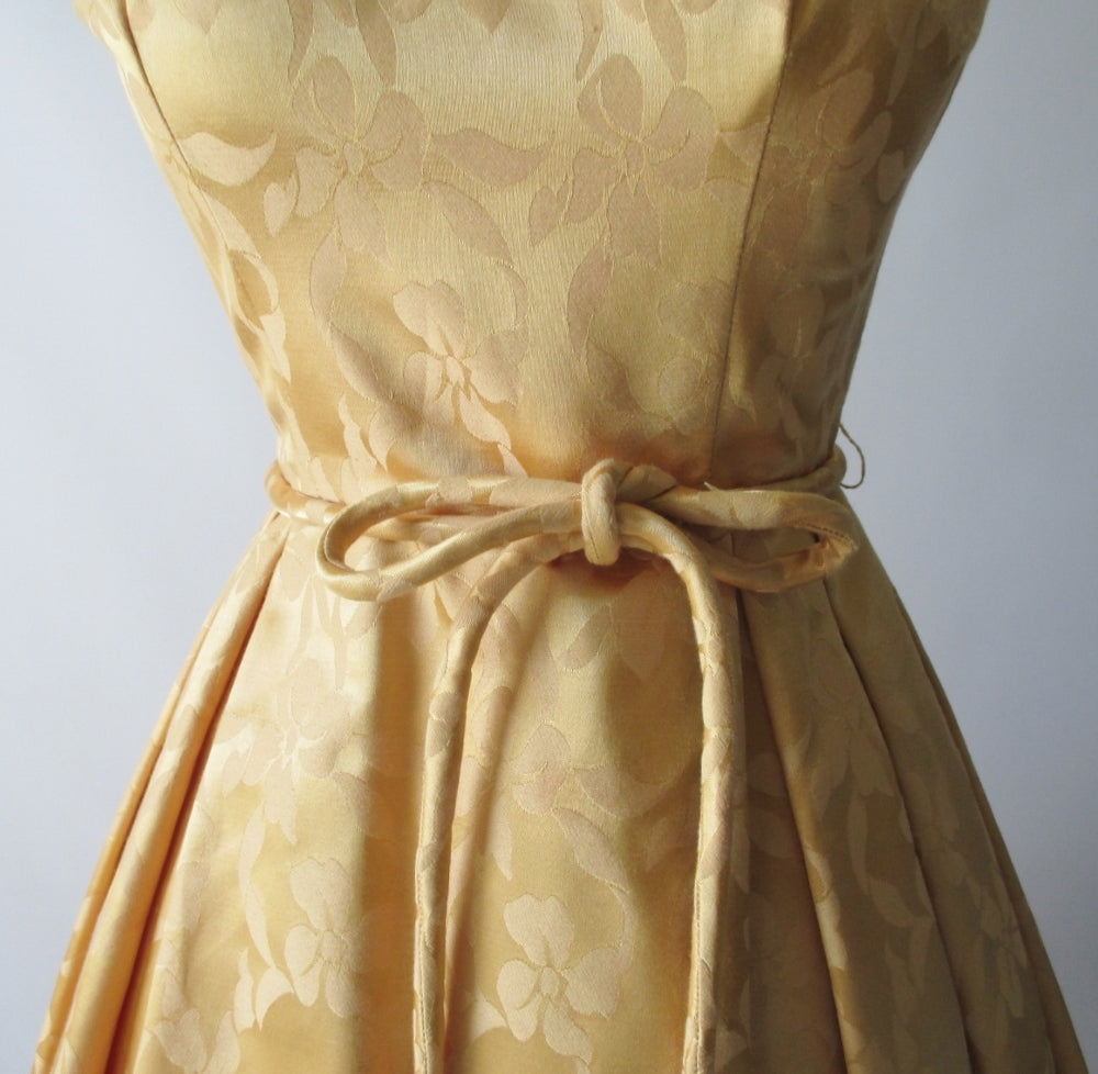Vintage 60's Gold Damask Satin Full Skirt Party Dress M