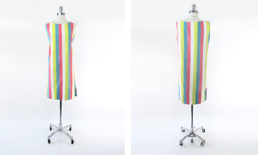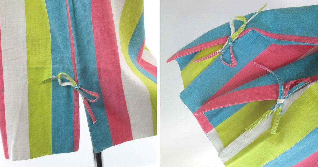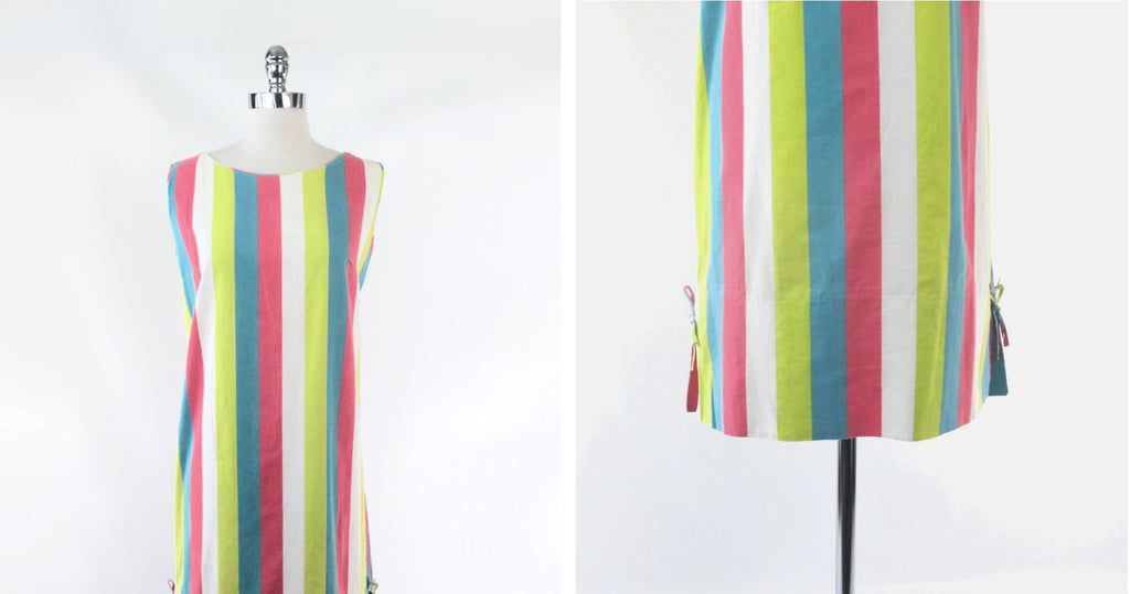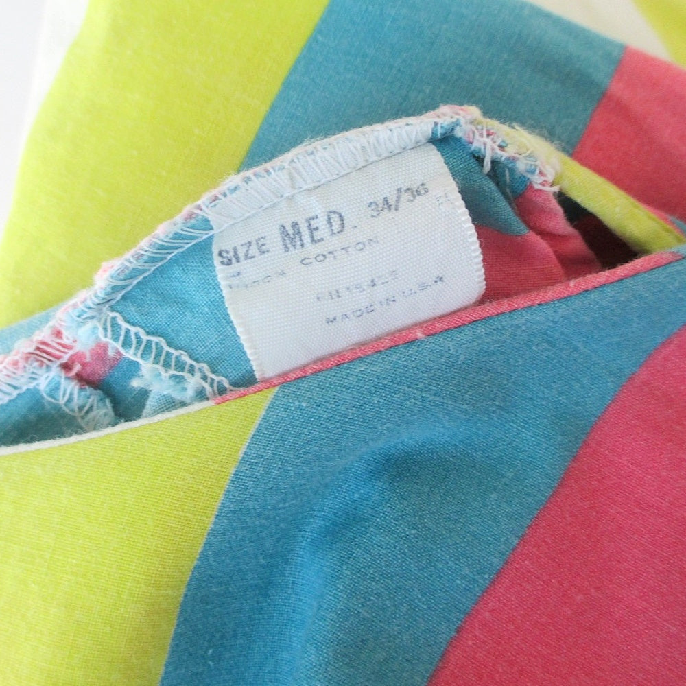Fun stripes in teal, red-pink, white and yellow / chartreuse.