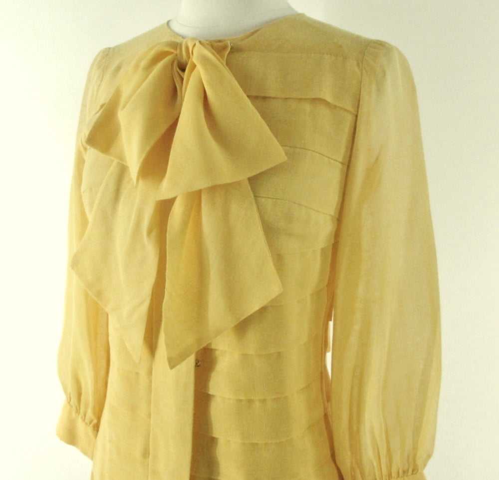 Vintage 60's Yellow Sheer Pussy Bow Shift Dress S