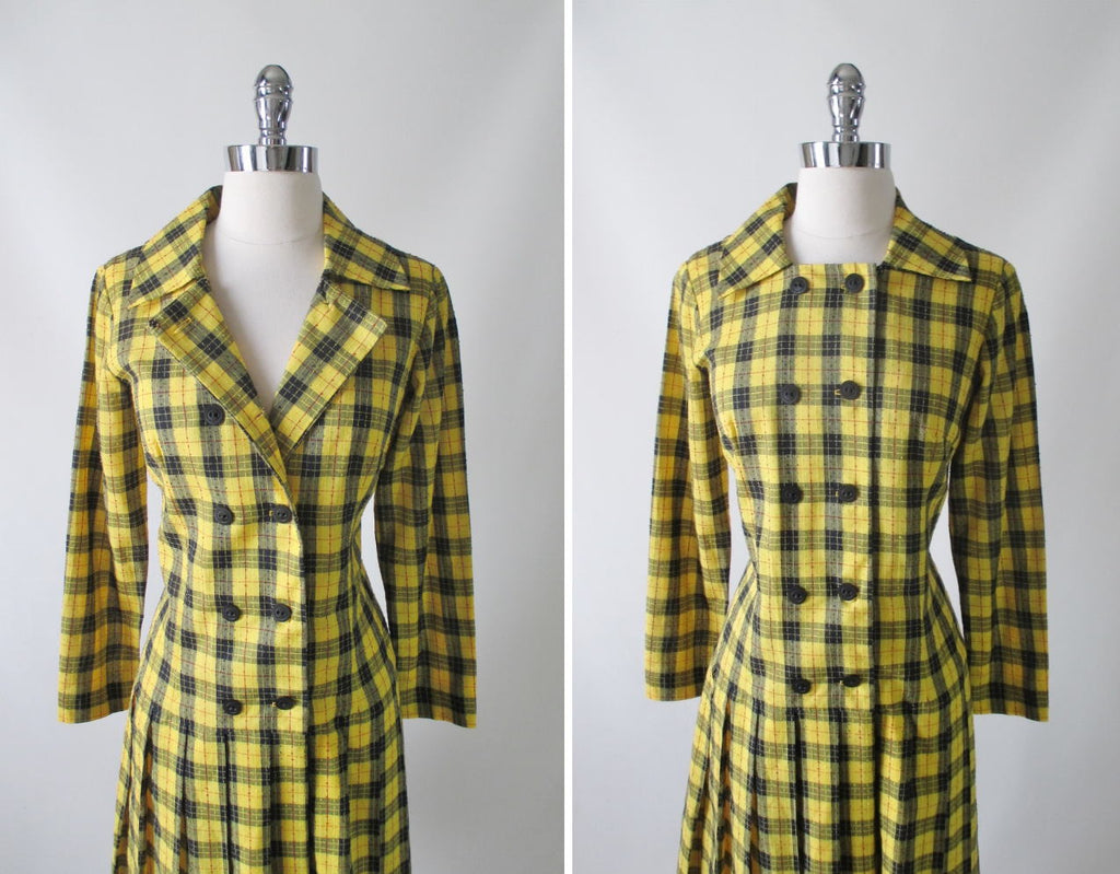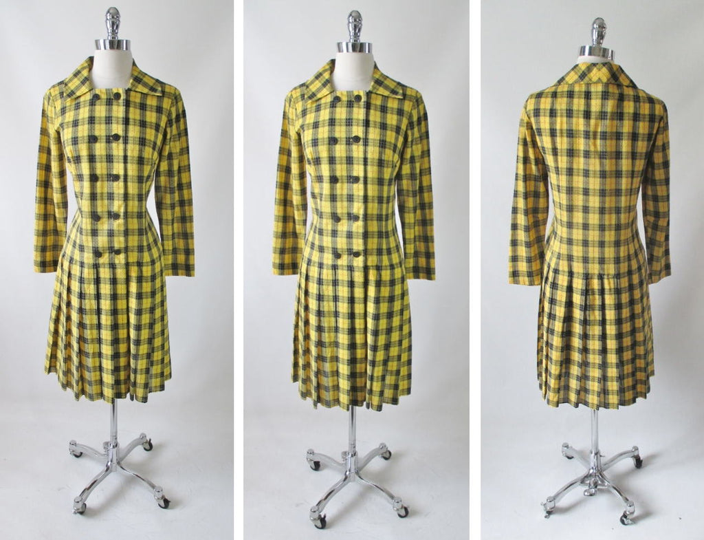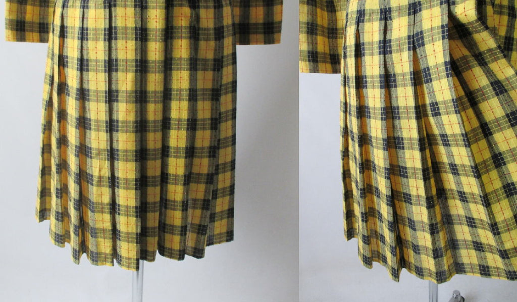 Vintage 60's Yellow Tartan Plaid Day Dress M