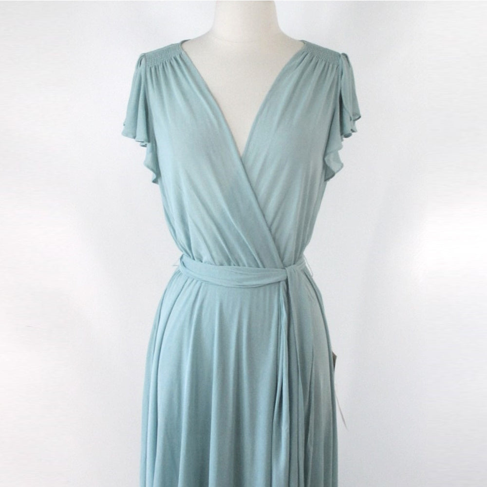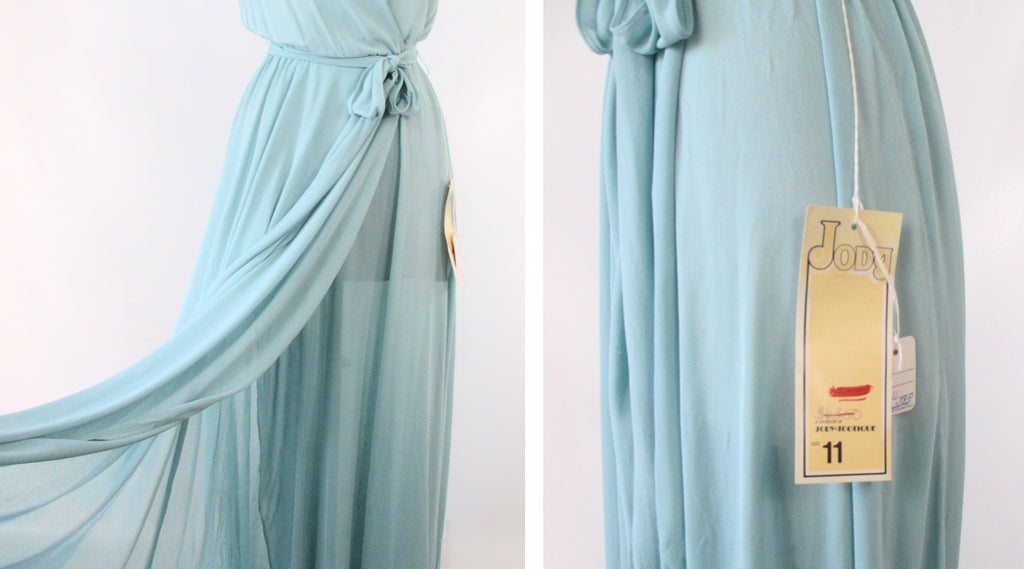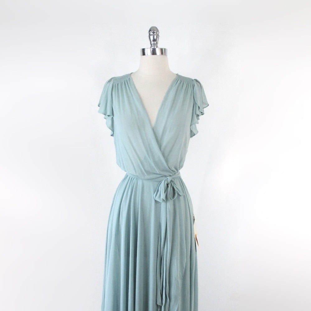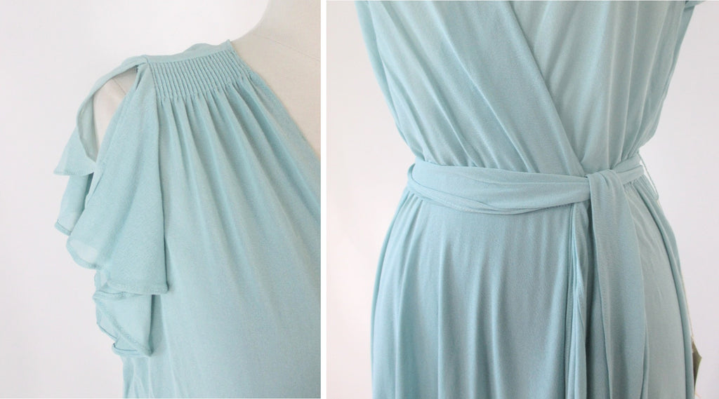 Vintage 70s | 40s Seafoam Full Length Sheer Gown Dress S | M
