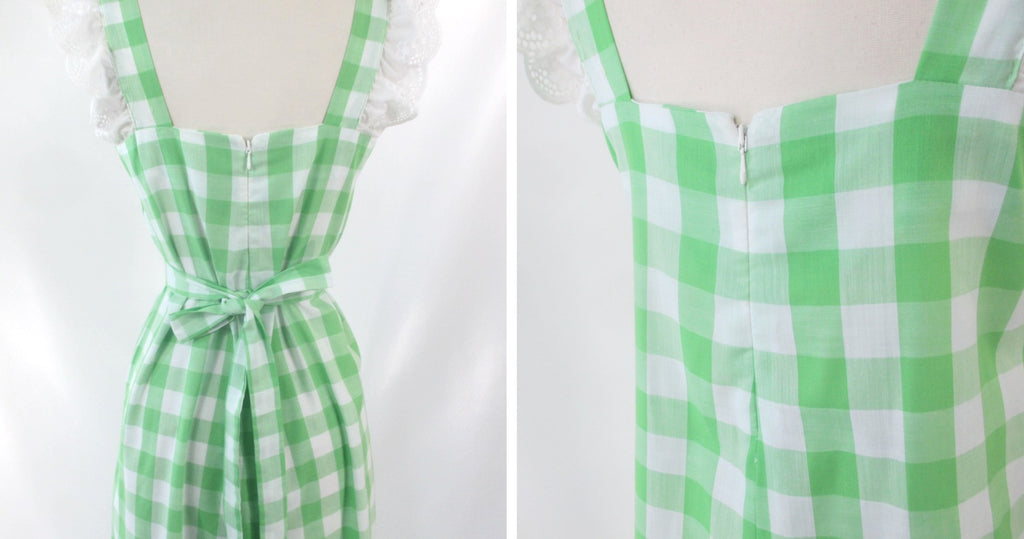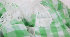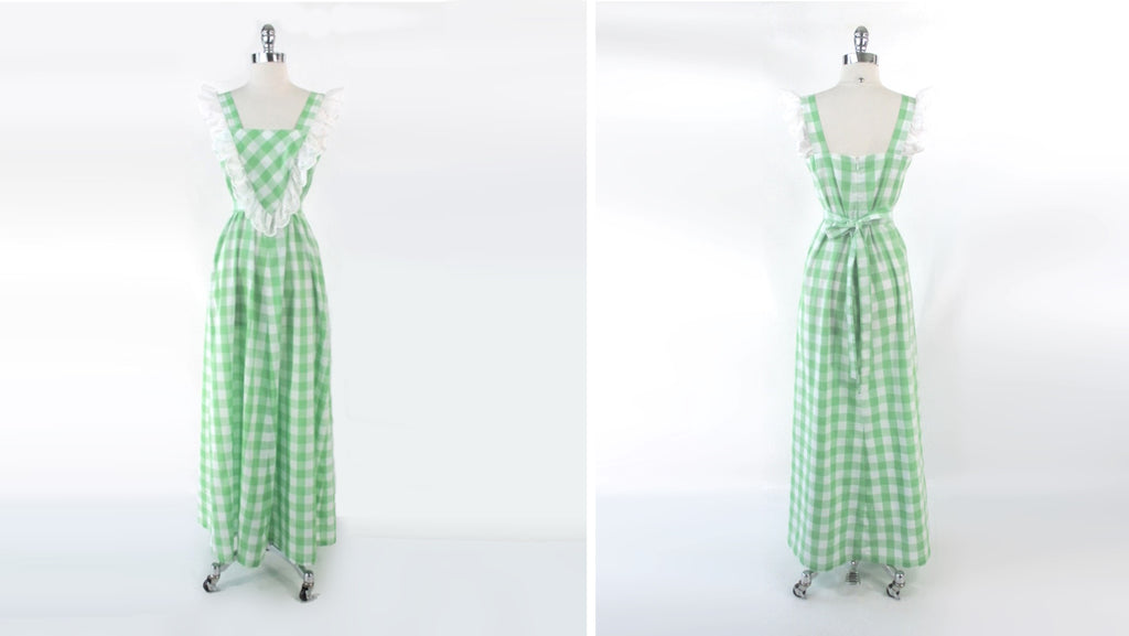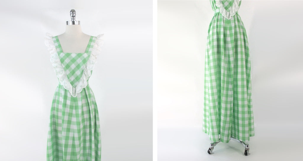 Vintage 70s Green Plaid Eyelet Lace Prairie Maxi Dress S