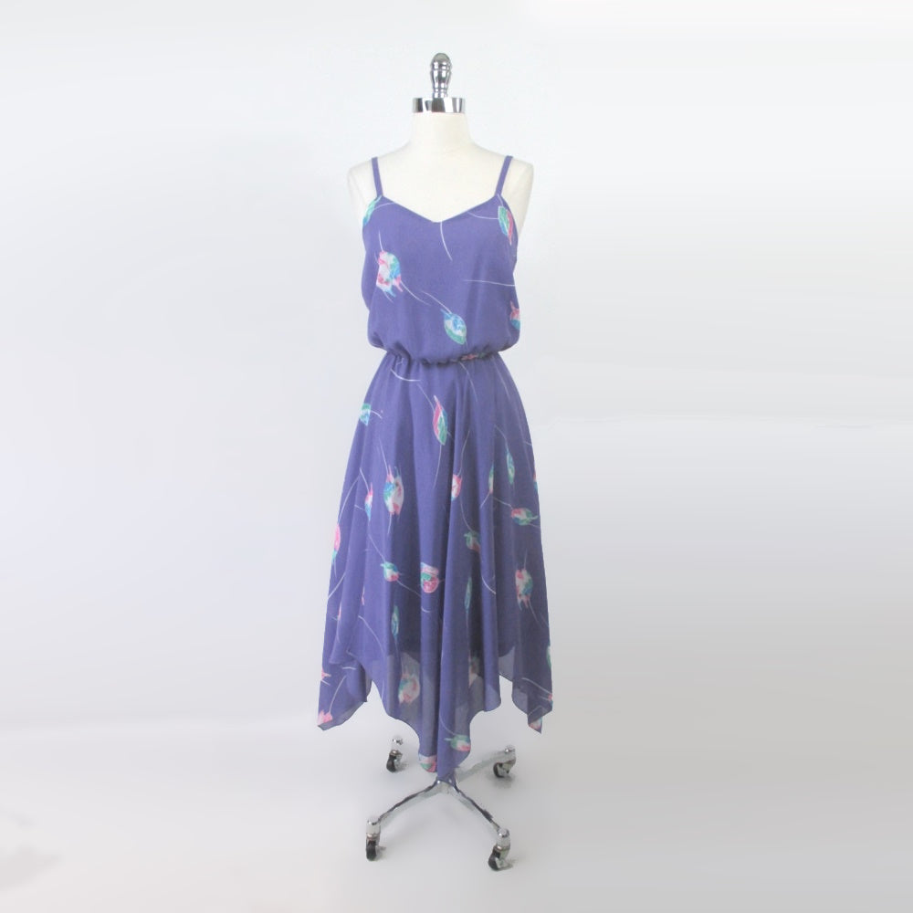 Vintage 70's Chiffon Dagger Hem Disco Dress S