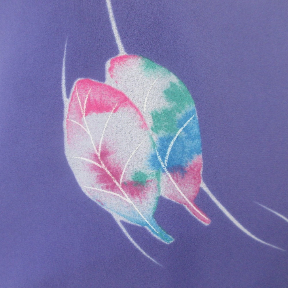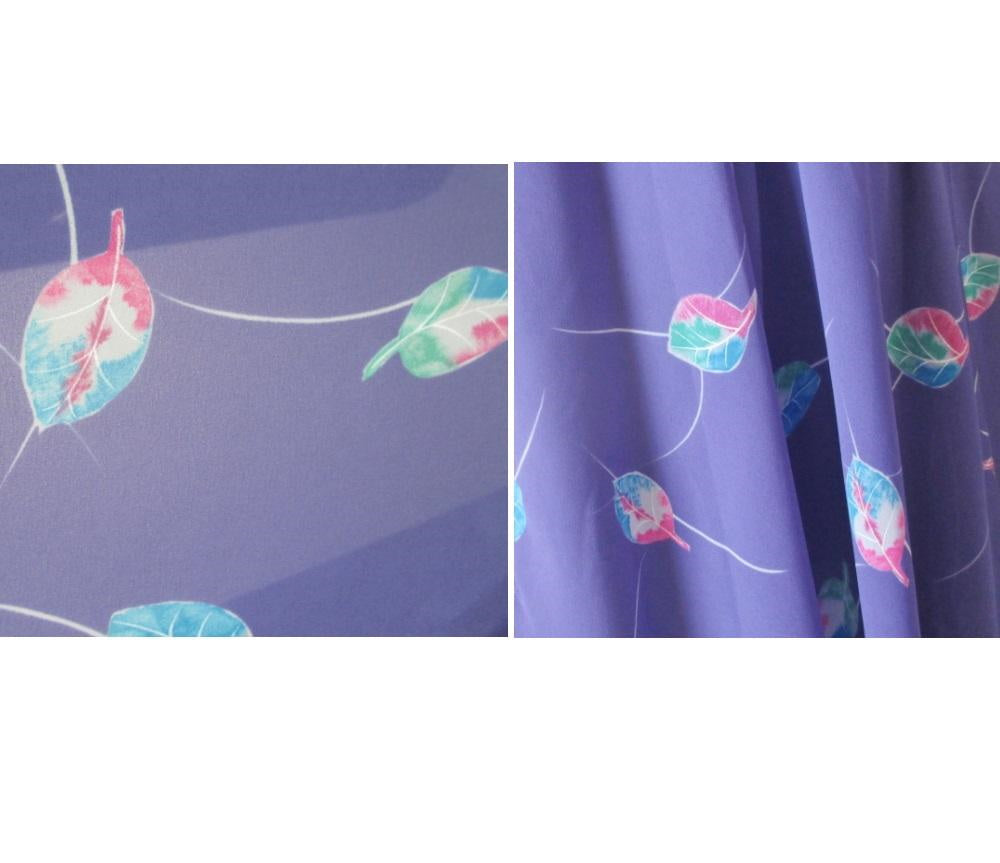 A sheer chiffon in lilac with a multicolor feather | leaf print.