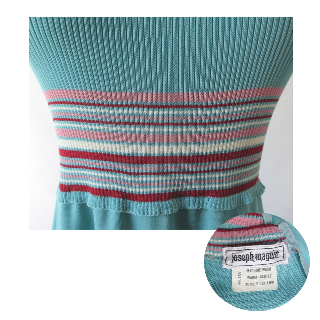 A ribbed knit tank bodice with stripes in burgundy, dusty rose and white,