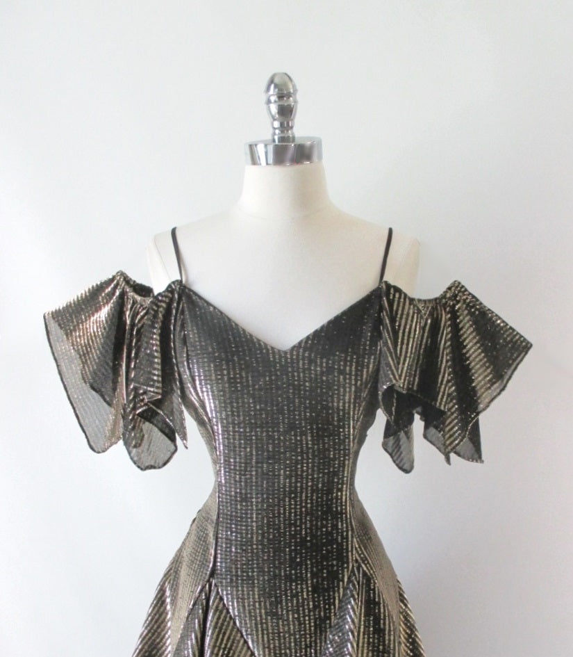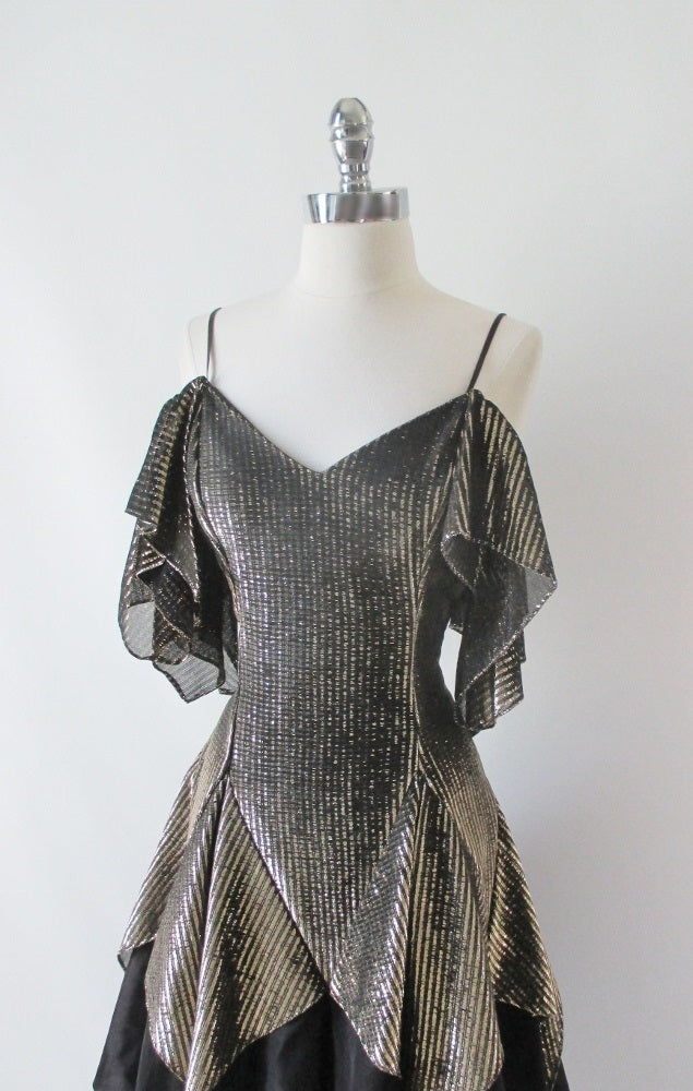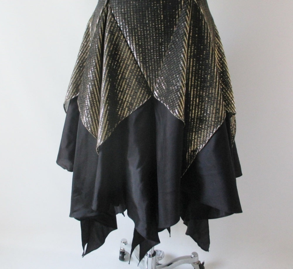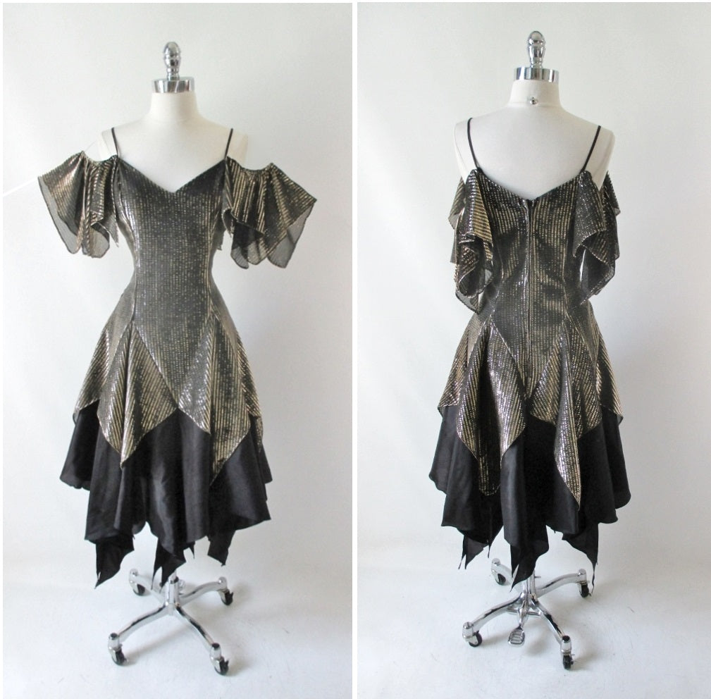 Vintage 70's Gold Off The Shoulders Handkerchief Hem Party Dress M