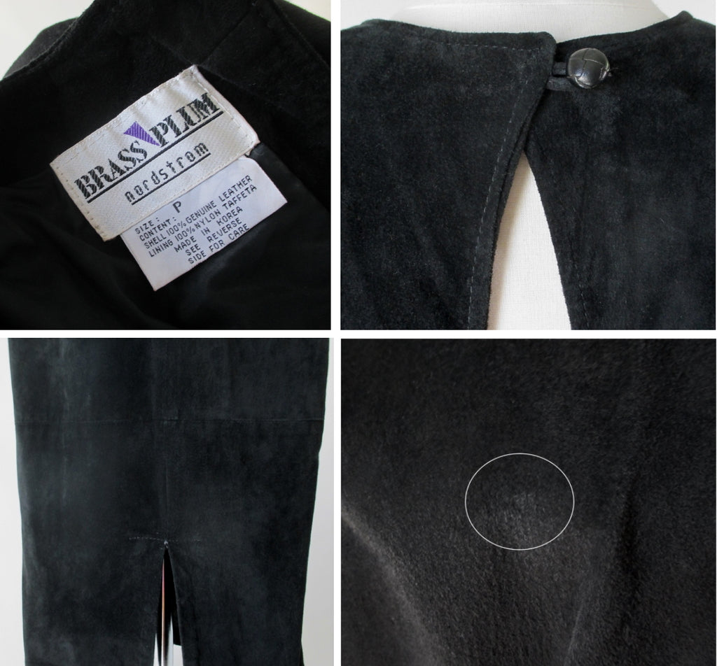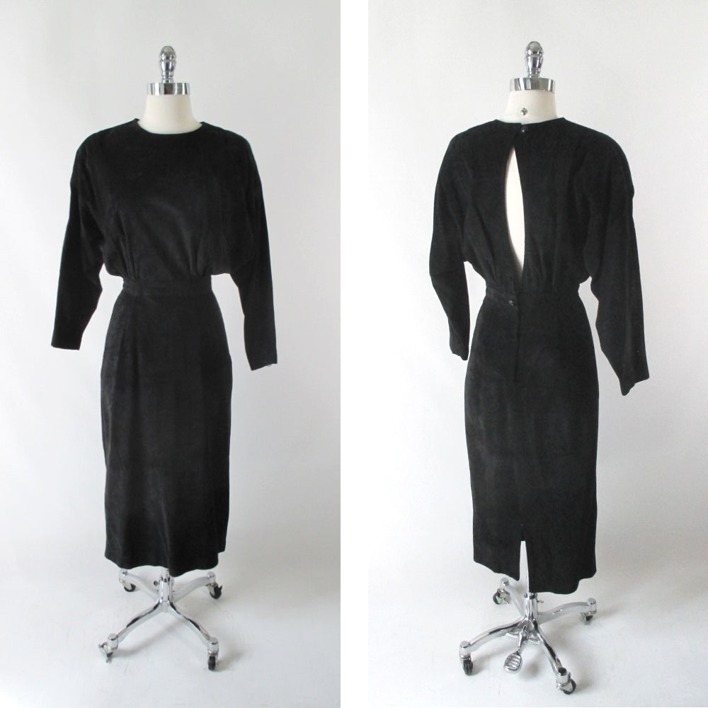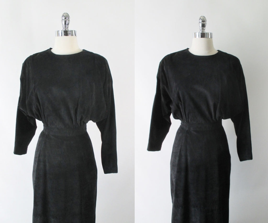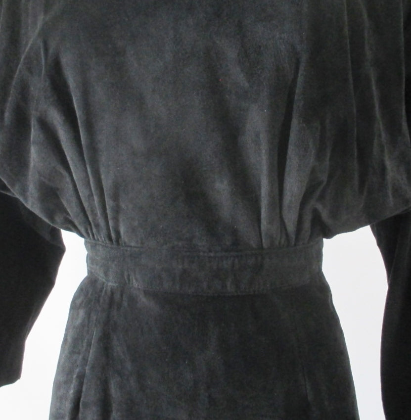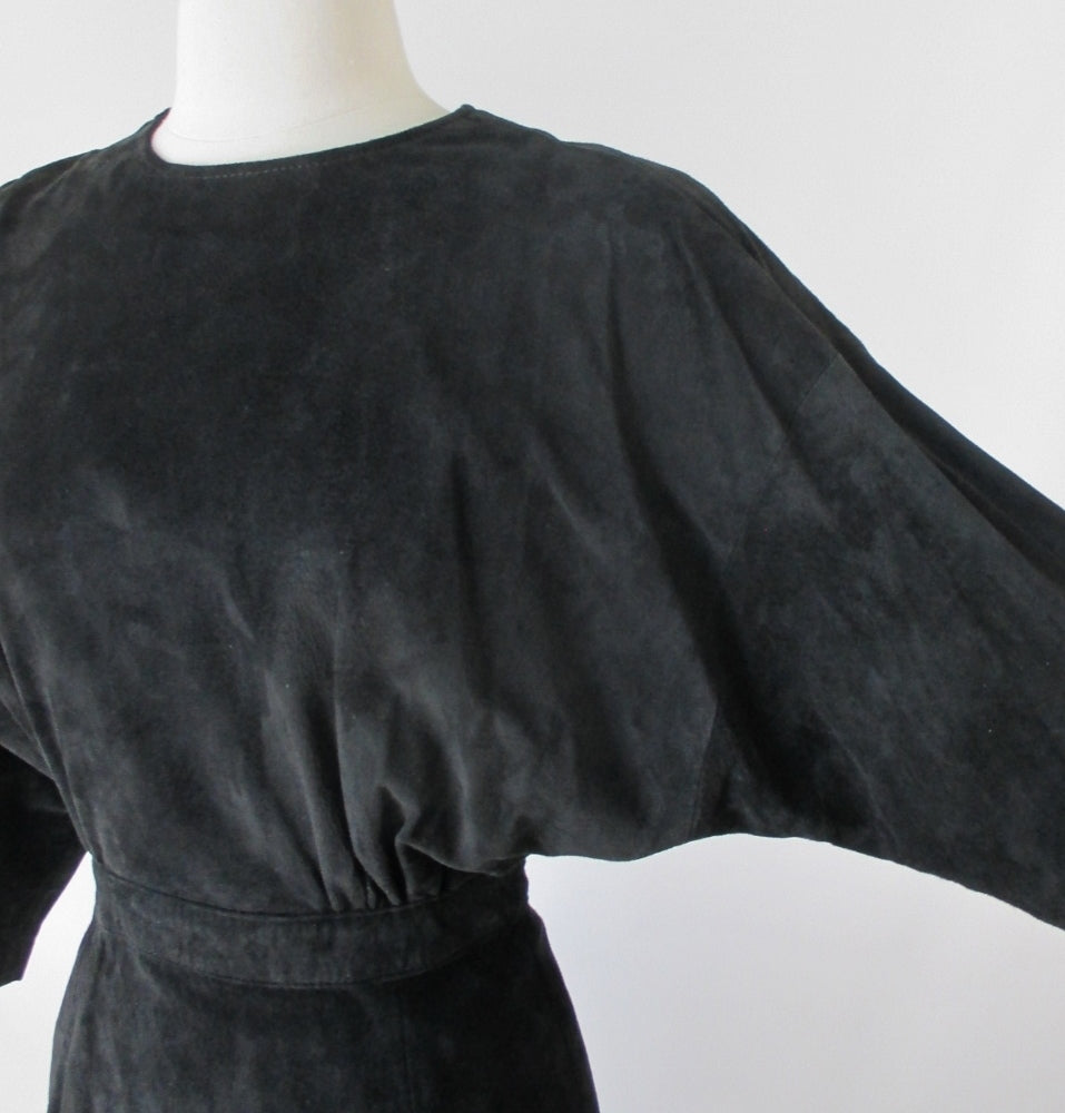 Vintage 80's Black Suede Leather Dolman Sleeve Dress