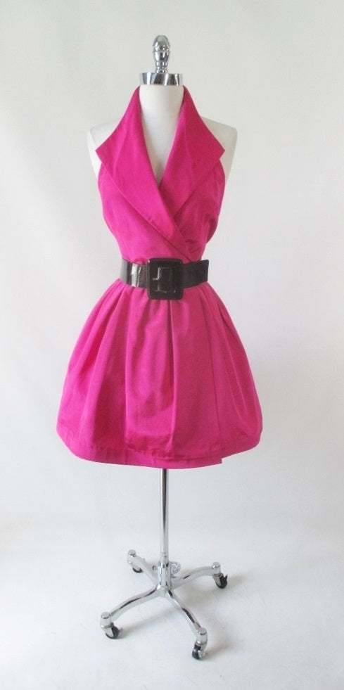 Vintage 80's Hot Pink Full Skirt Party Dress S