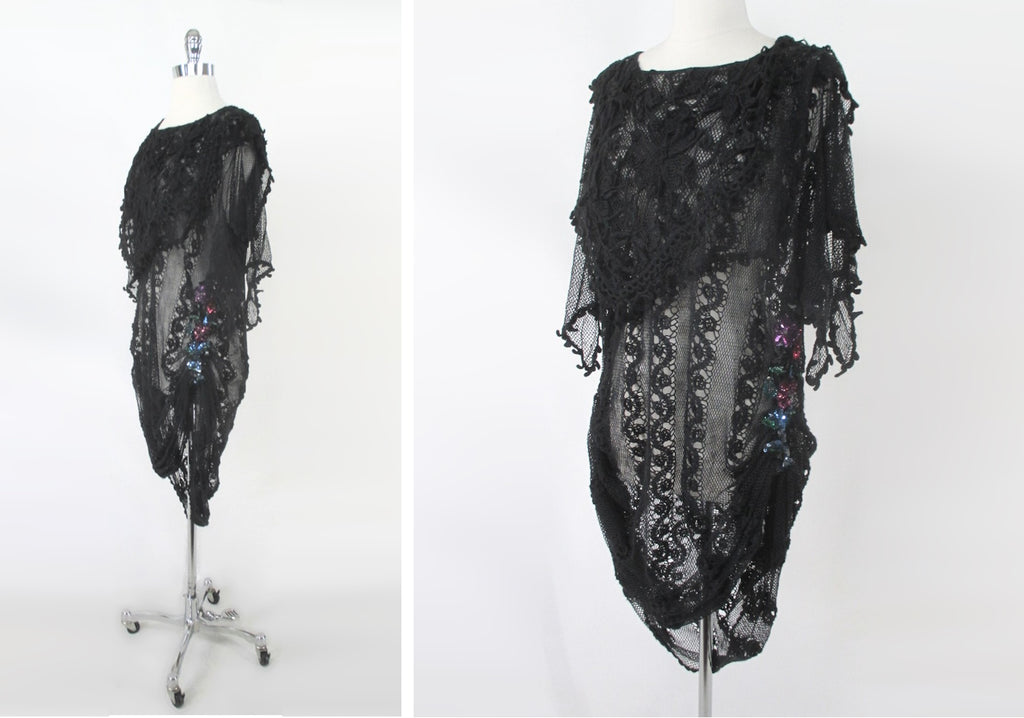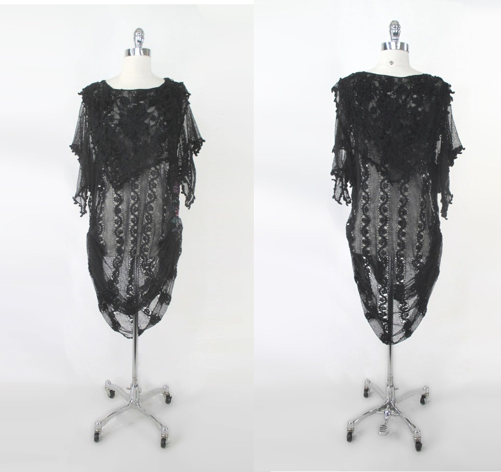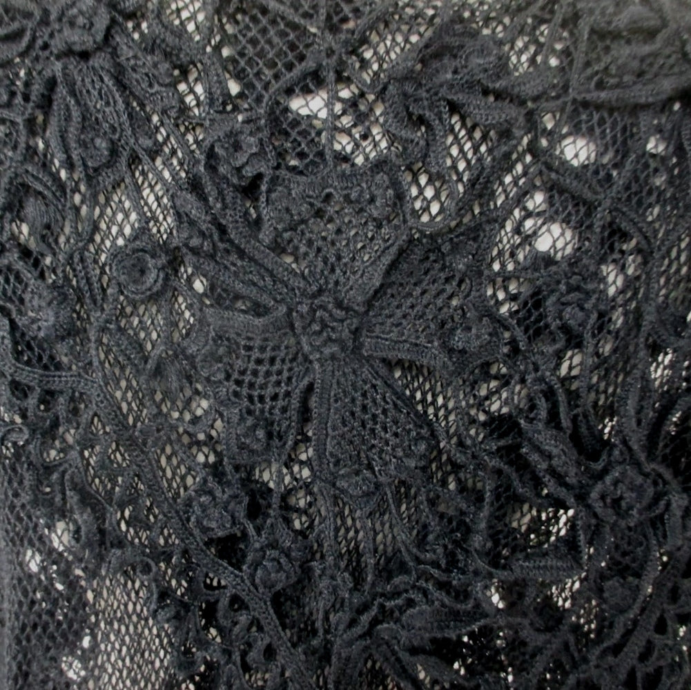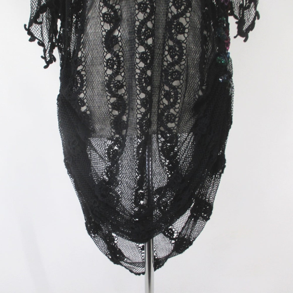 Vintage 80s Lims Handmade Black Crochet Party Dress L | XL