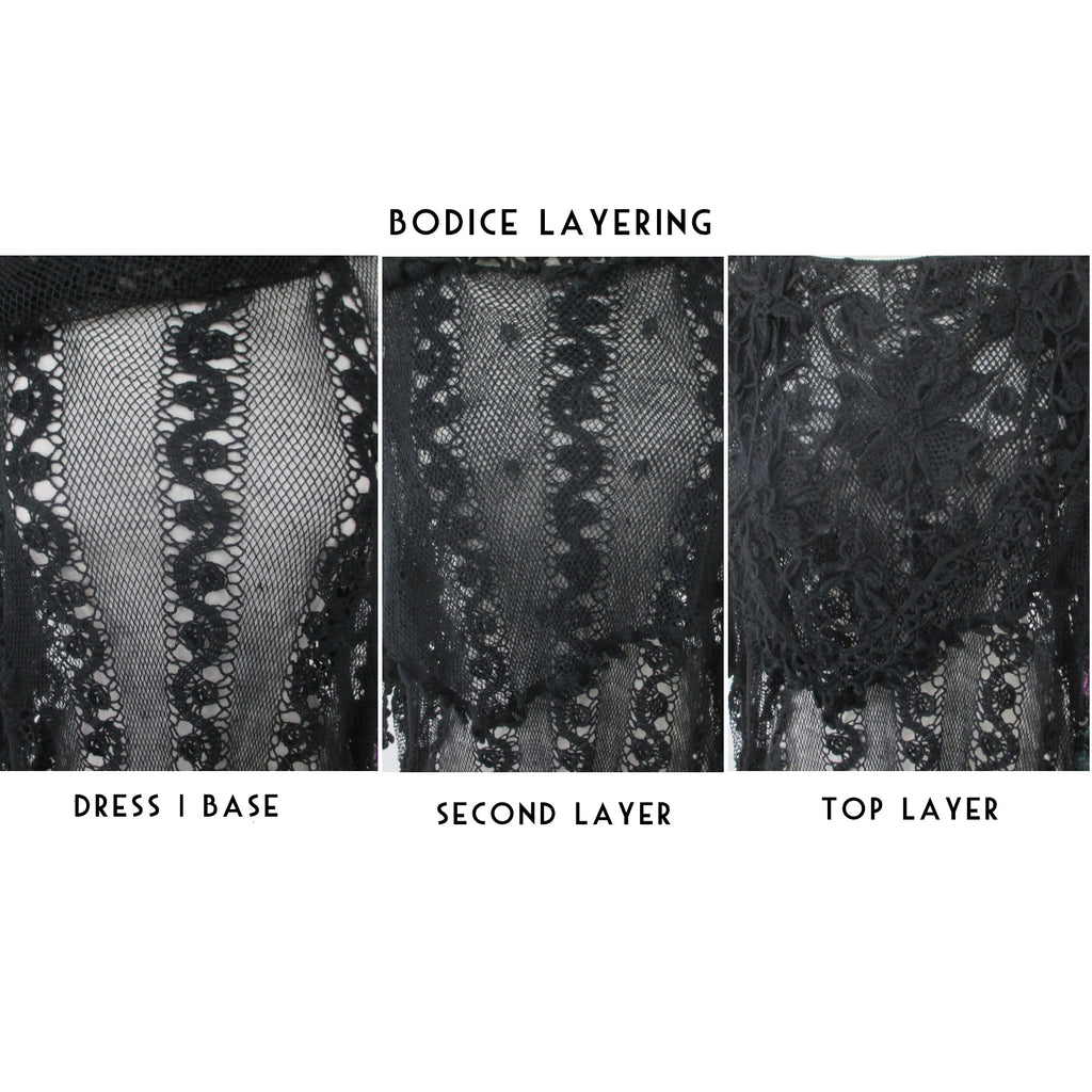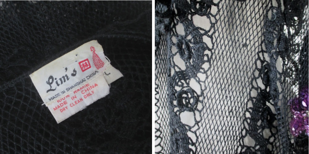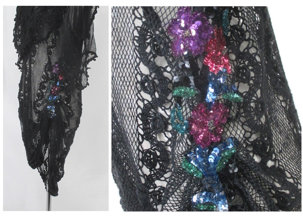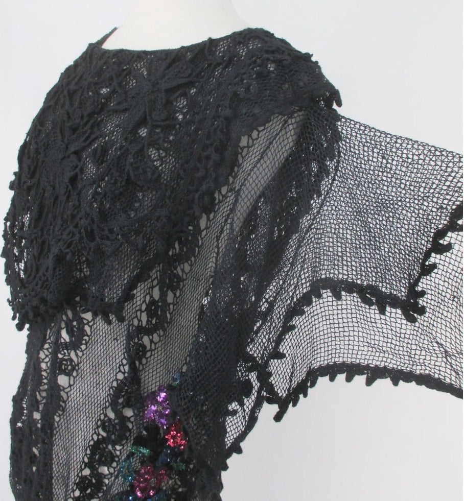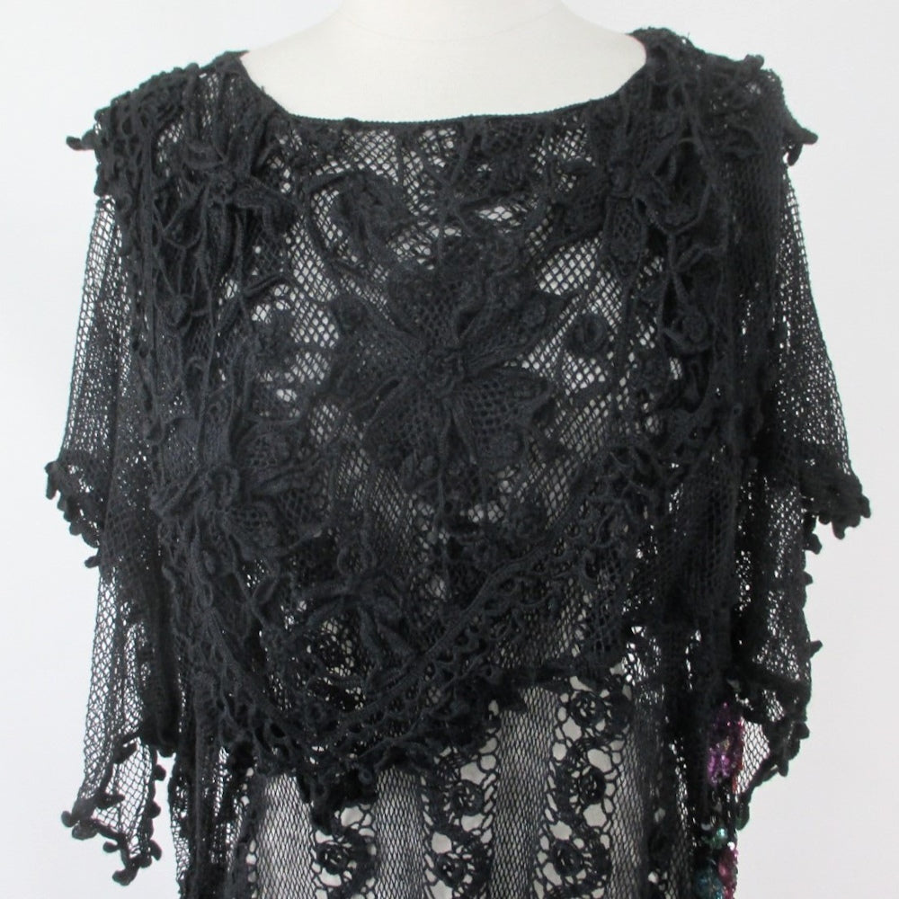 Vintage 80s Lims Handmade Black Crochet Party Dress L | XL