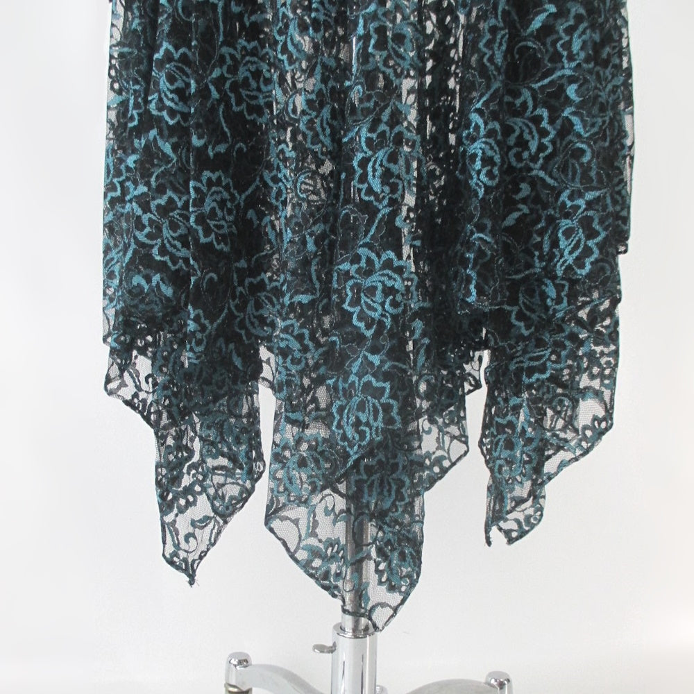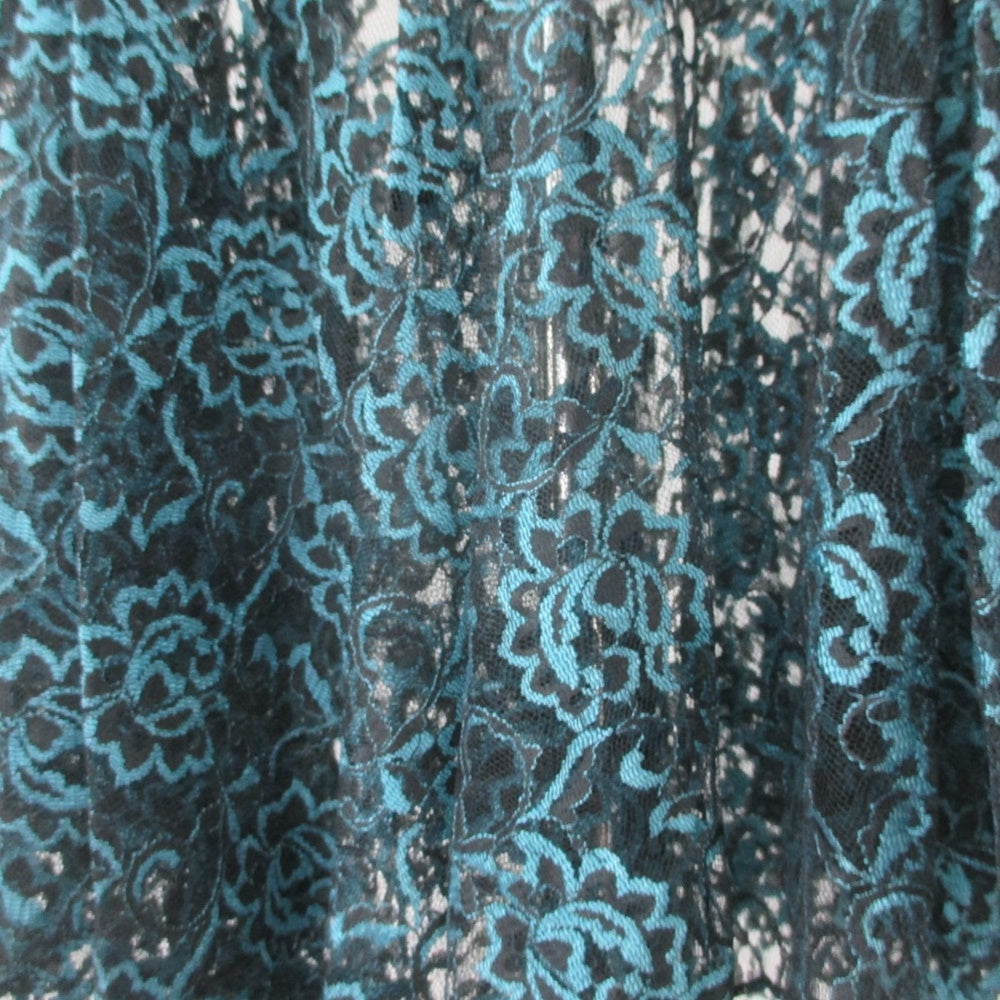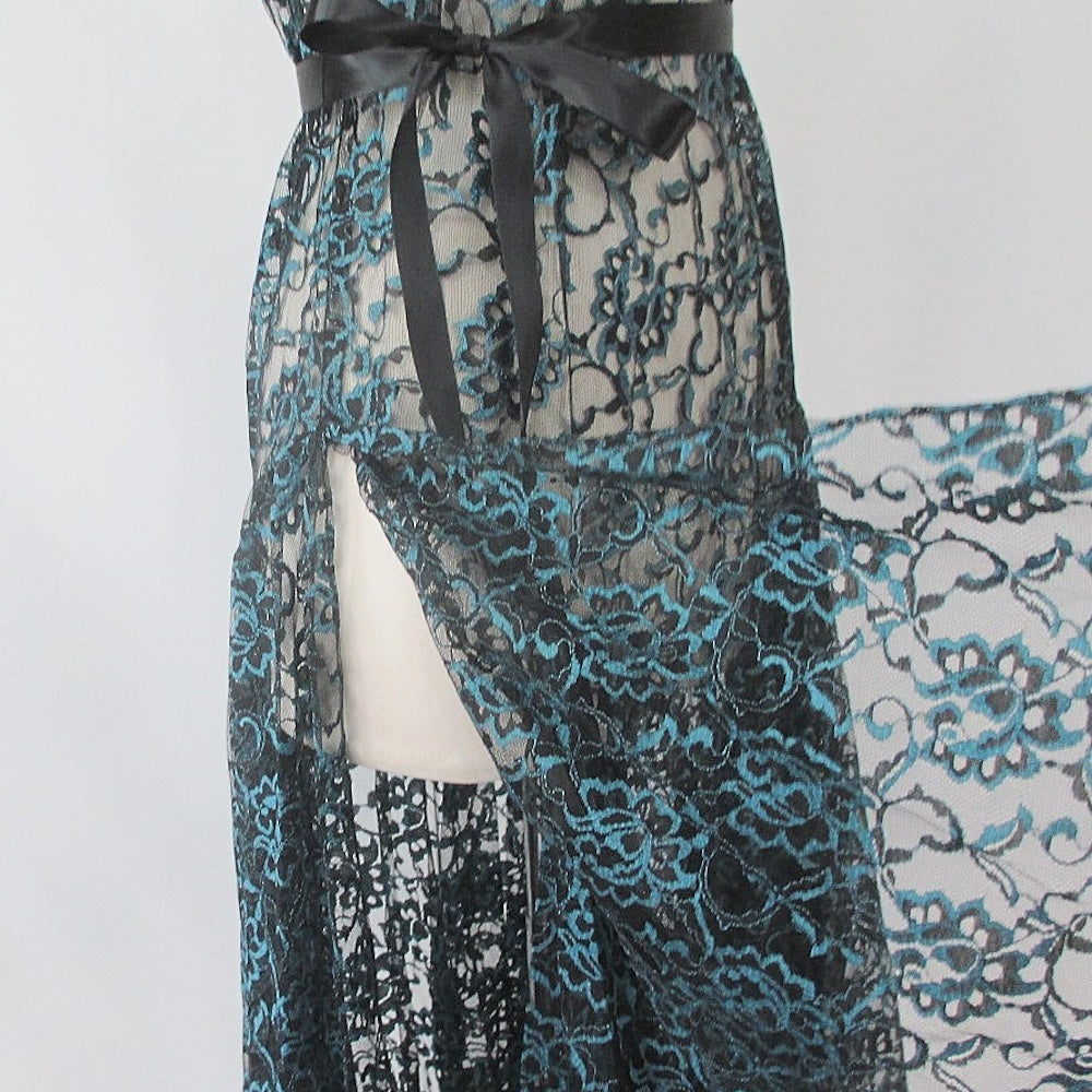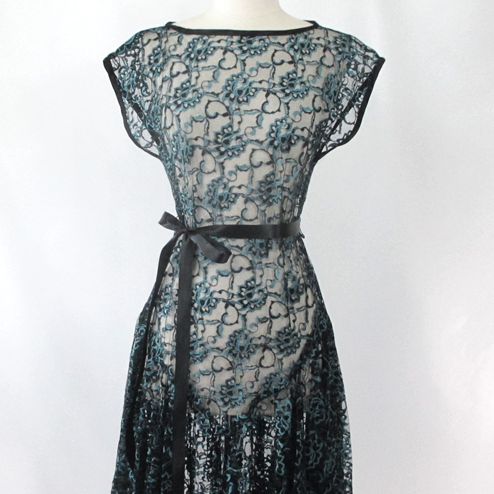 Vintage 80s Sheer Blue & Black Lace Dress S