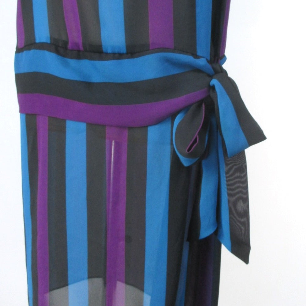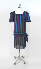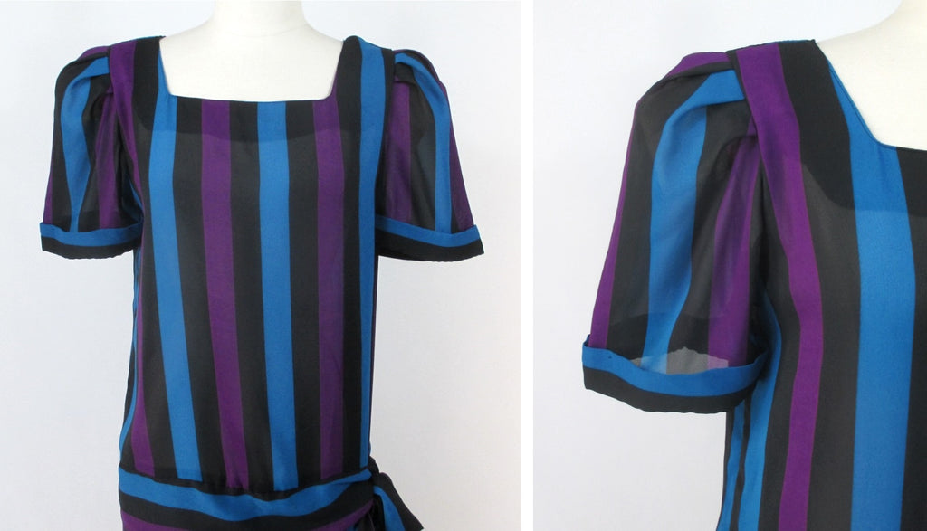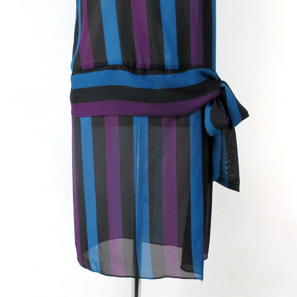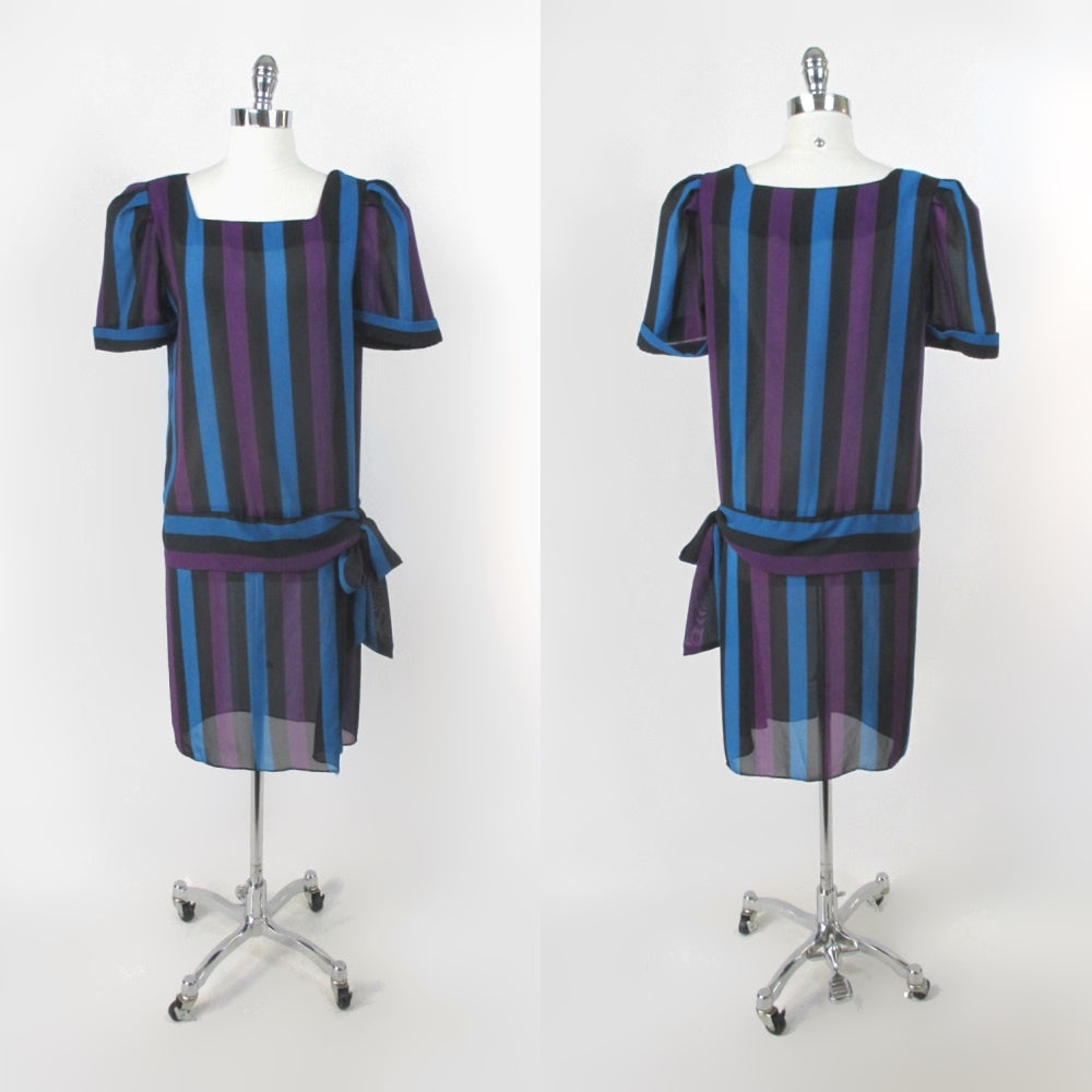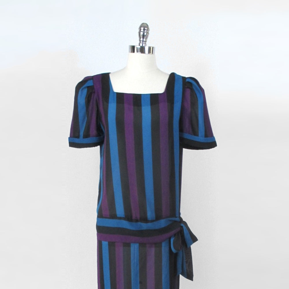 Vintage 80s Sheer Stripe Drop Waist Dress L