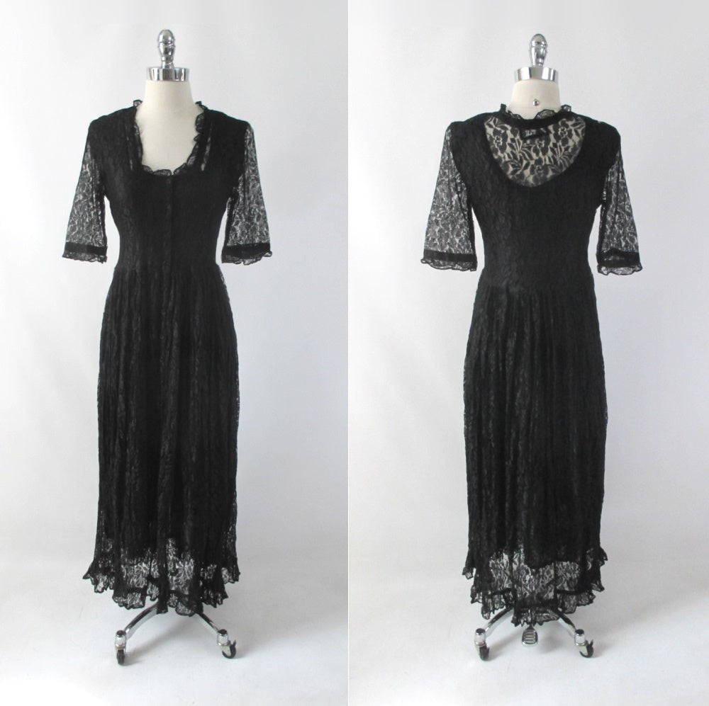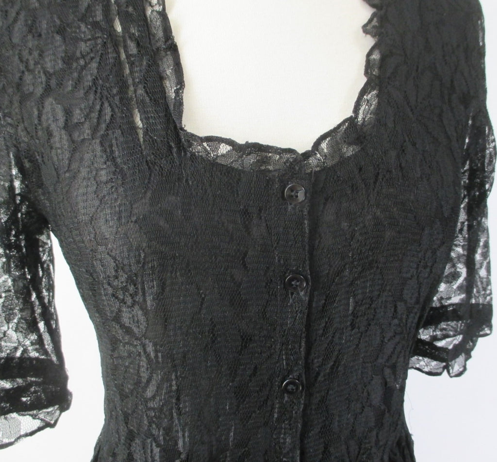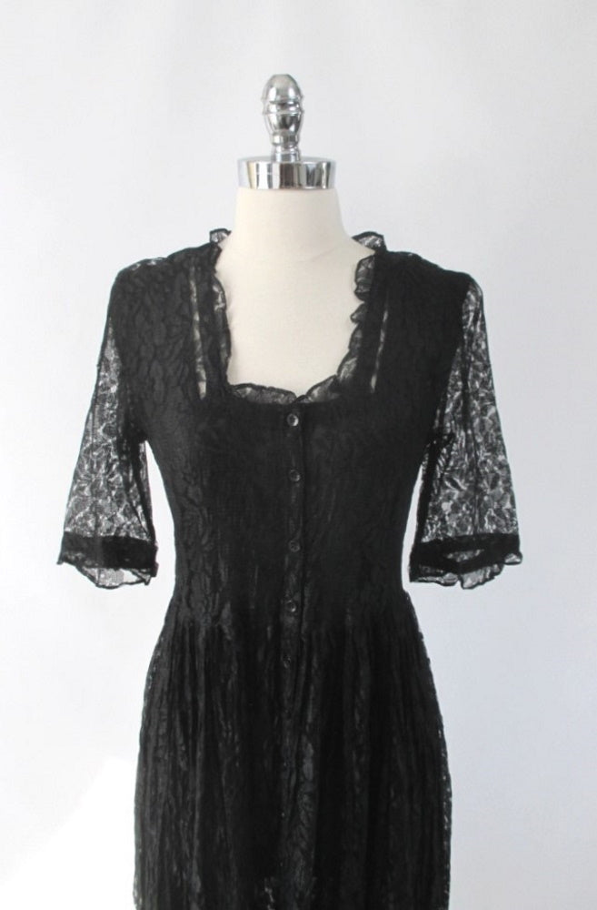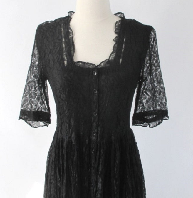 Vintage 90s Black Lace Grunge Tea Dress M