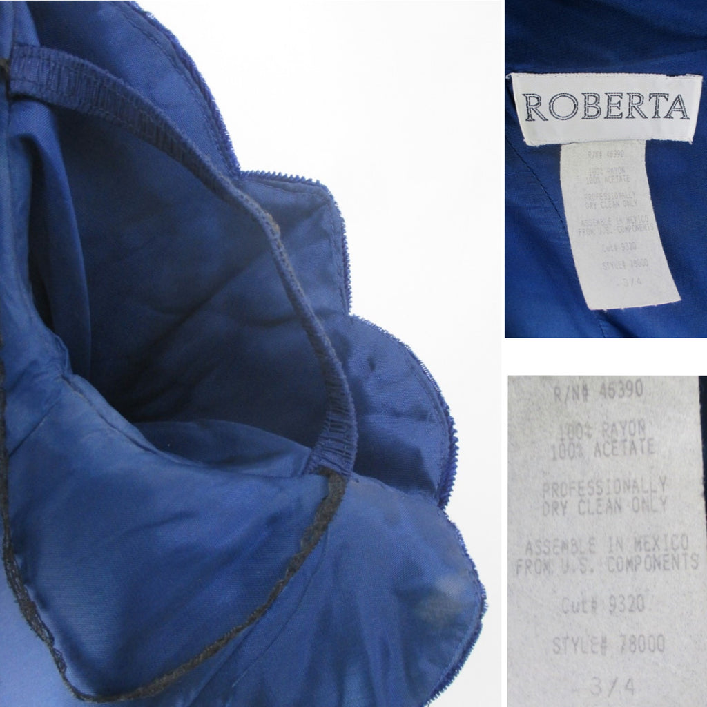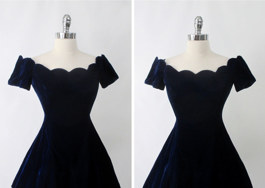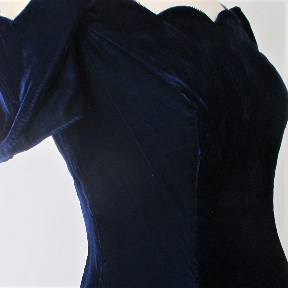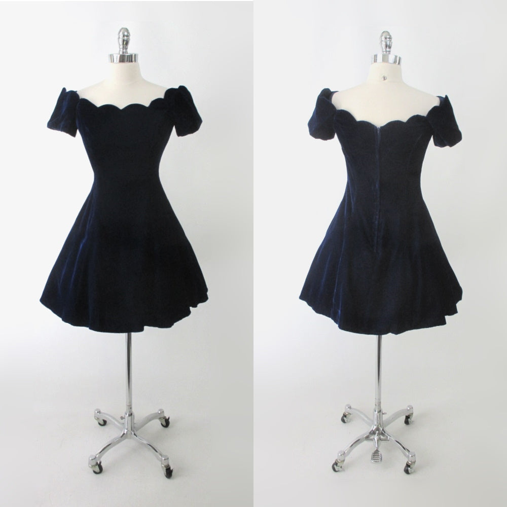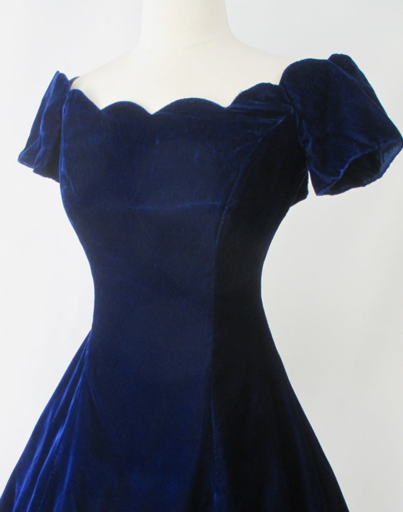 Vintage 90s Blue Velvet Off Shoulder Mini Party Dress S