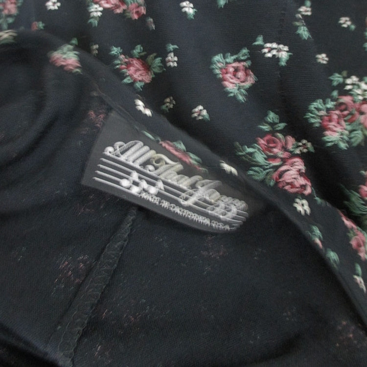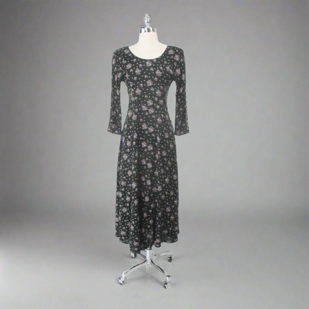 Rounded neckline with padded shoulders and 3 / 4 length, dolman sleeves.