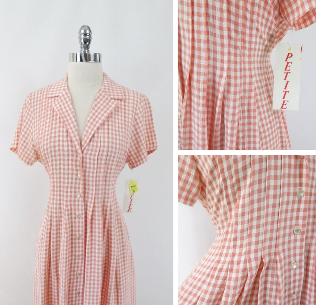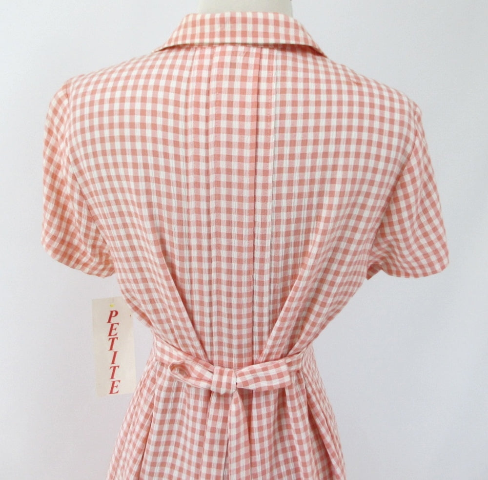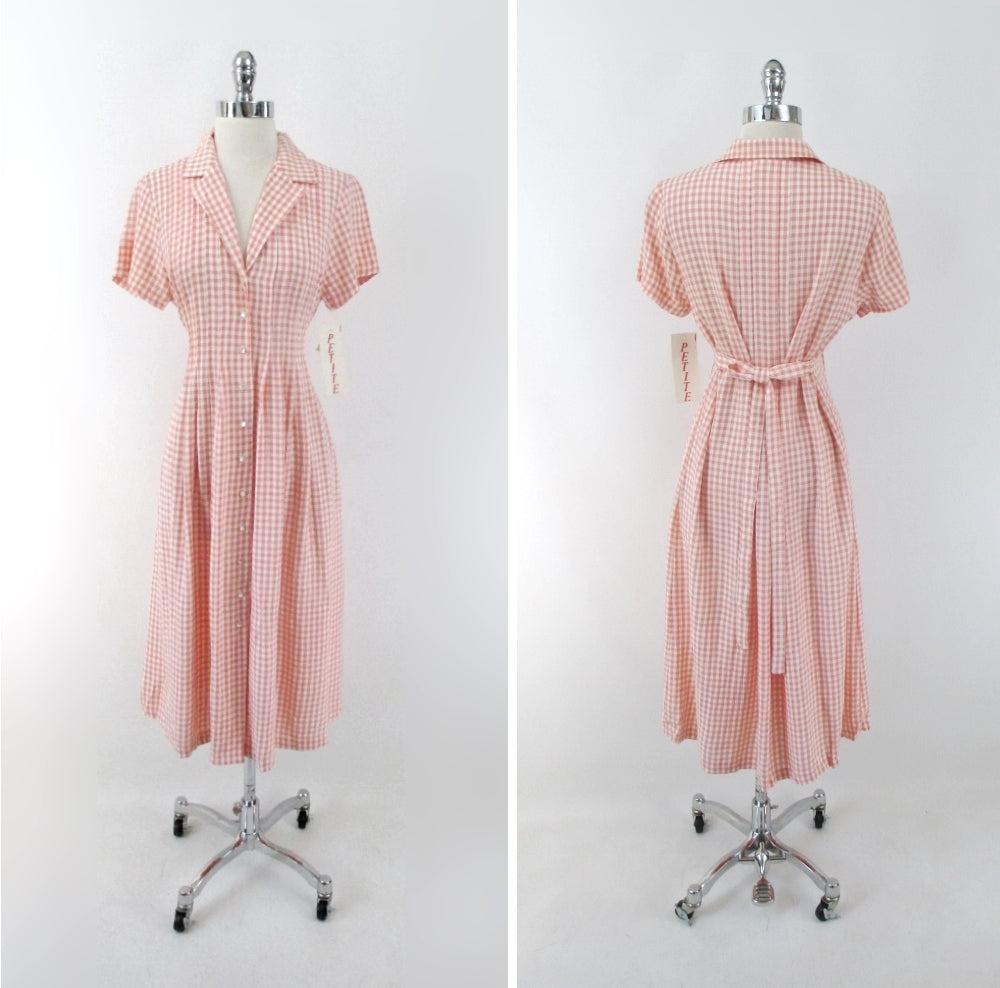 Vintage 90s Peach Gingham Tea Length Ashley Dress M