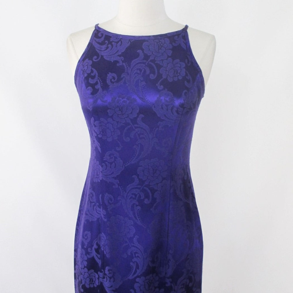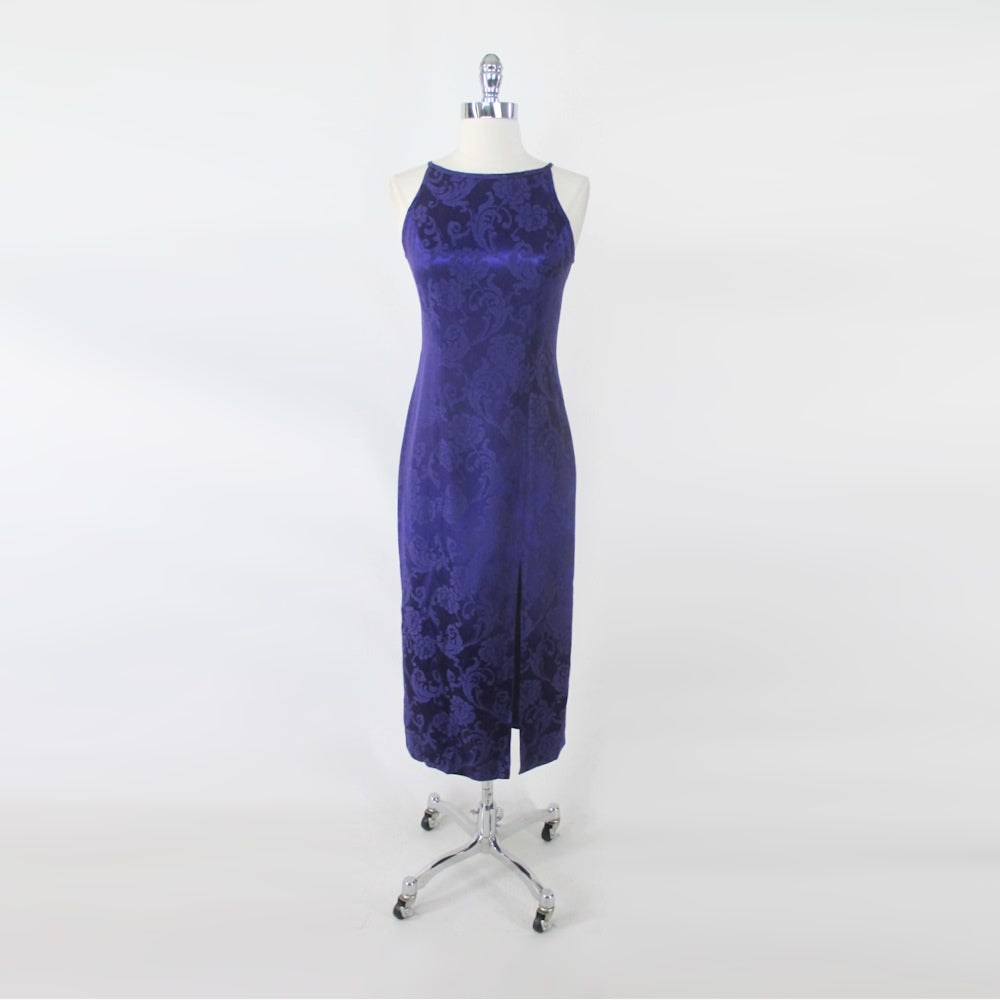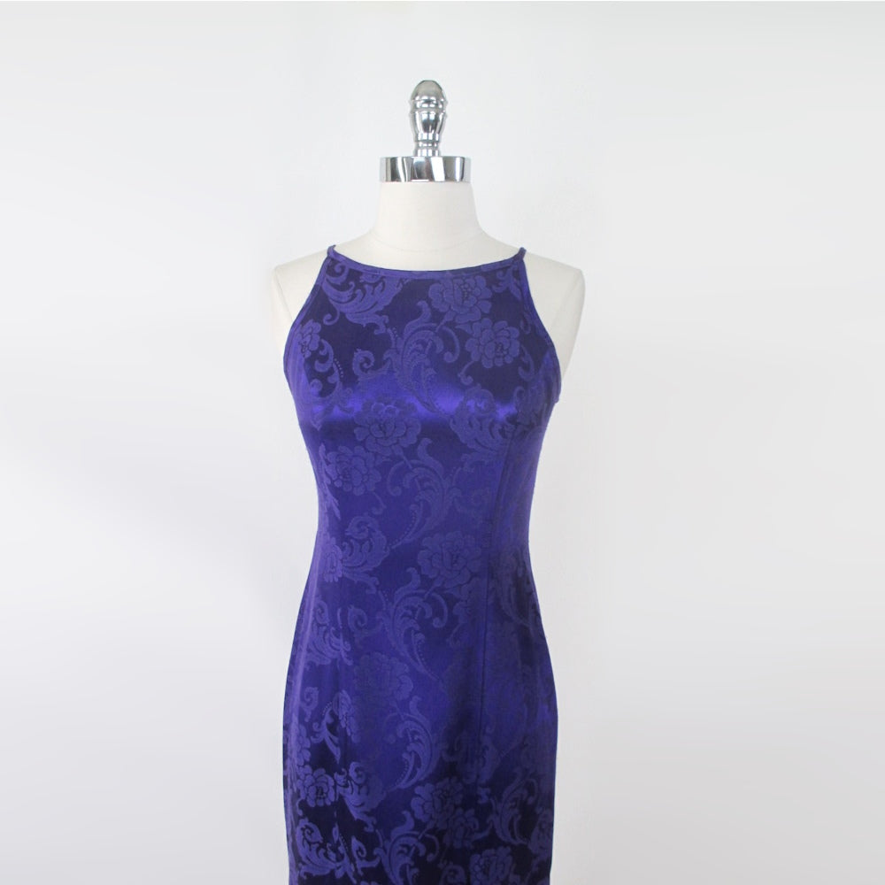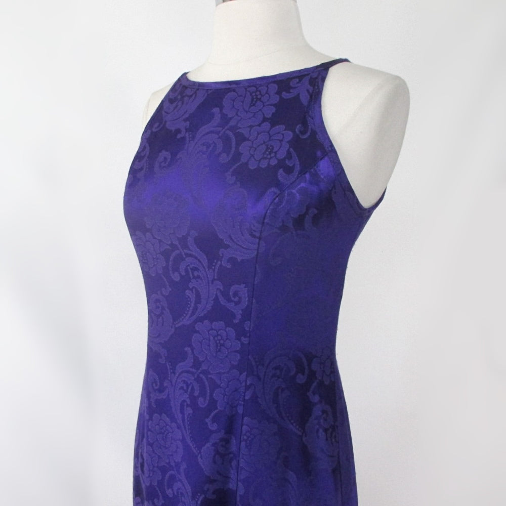 Vintage 90s Purple Jacquard Maxi Party Dress Gown S P