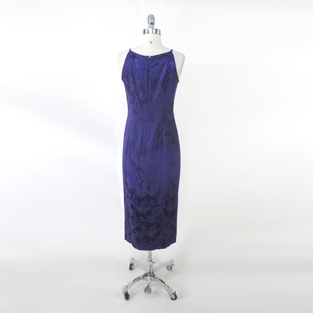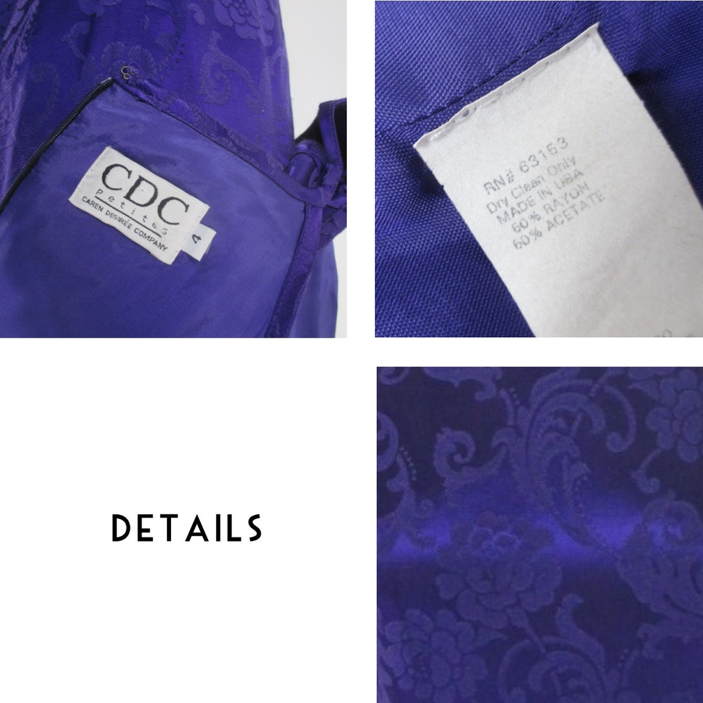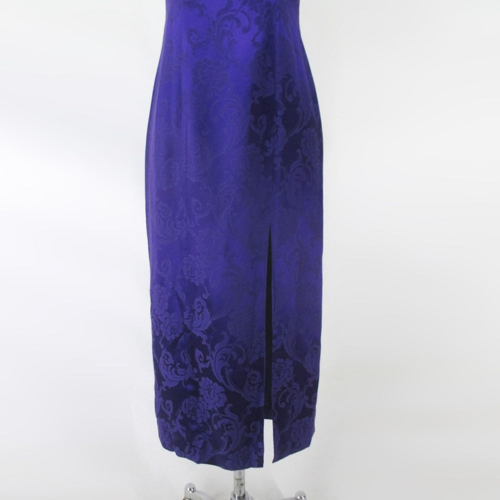 Vintage 90s Purple Jacquard Maxi Party Dress Gown S P