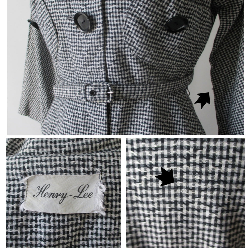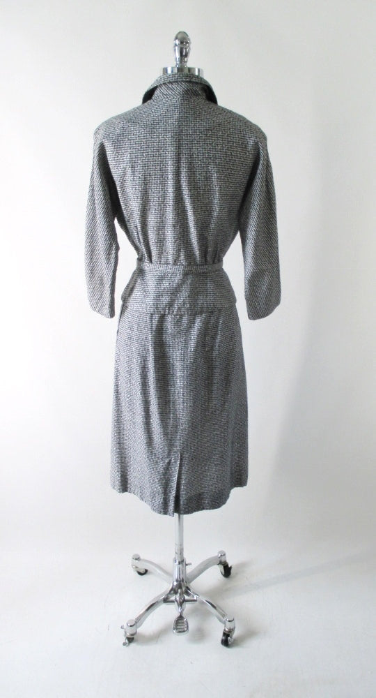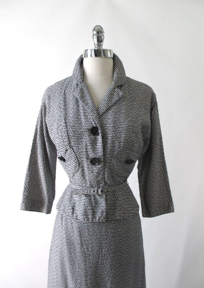 Vintage 50's Black White Check 3 Piece Peplum Suit / Skirt Jacket Set S
