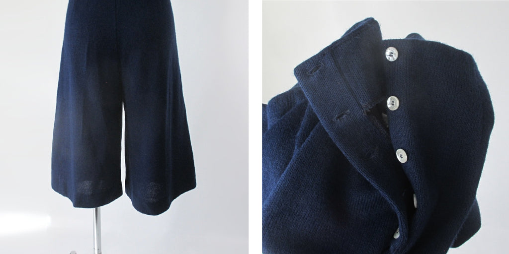 Vintage 70s Navy Blue Knit Button Front Gauchos Culottes S