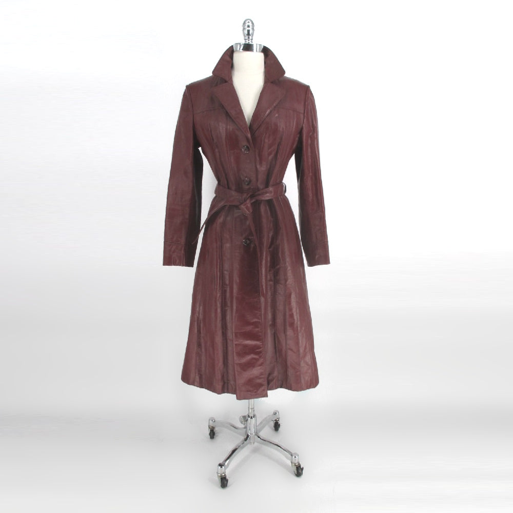 Vintage 70s Oxblood Leather Trench Coat S