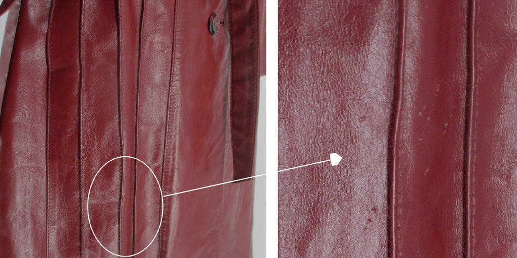 Rub mark to the front + nip in belt + 2 white spot on lining