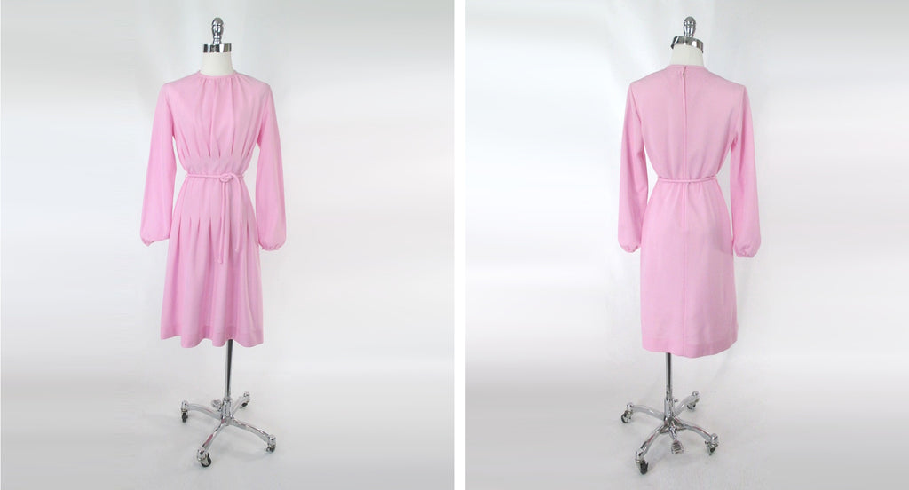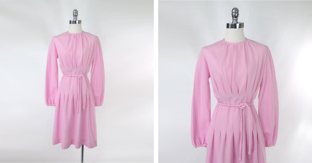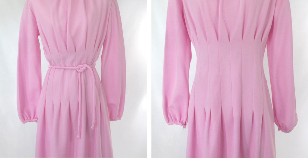 Vintage 70s Pink Pleated Midi Party Dress S/M