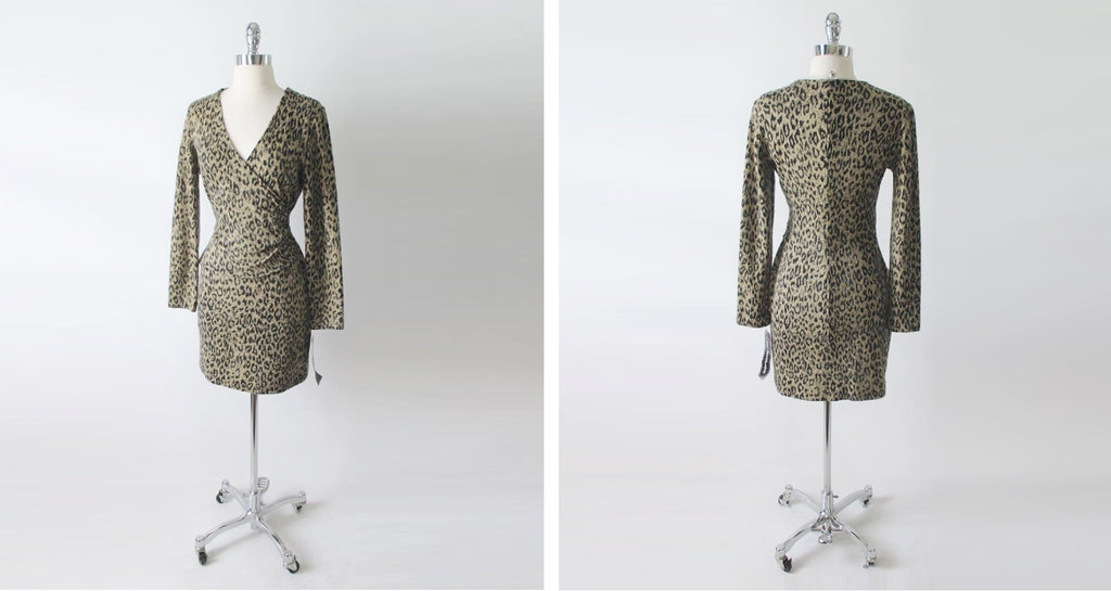 Vintage 80's 90s Fredericks Soft Leopard Bodycon Dress M