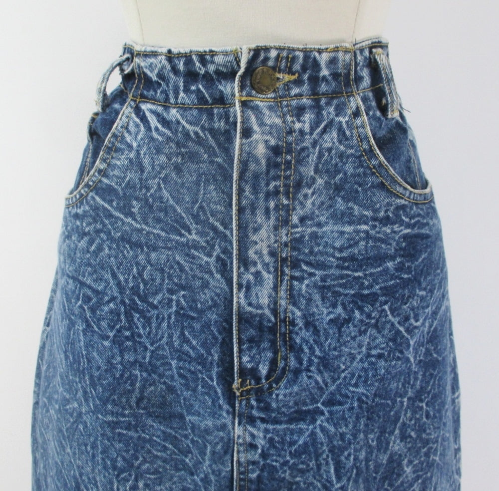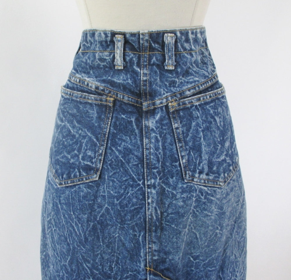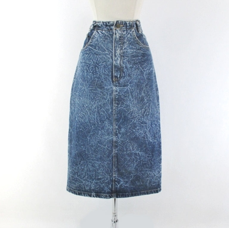 Vintage 90's Acid / Leather Washed Denim Skirt M