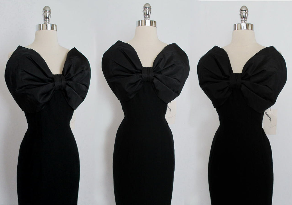 Vintage 1960's / 50's Pines Black Cocktail Dress Blackwell Bow S