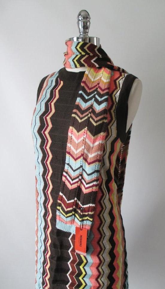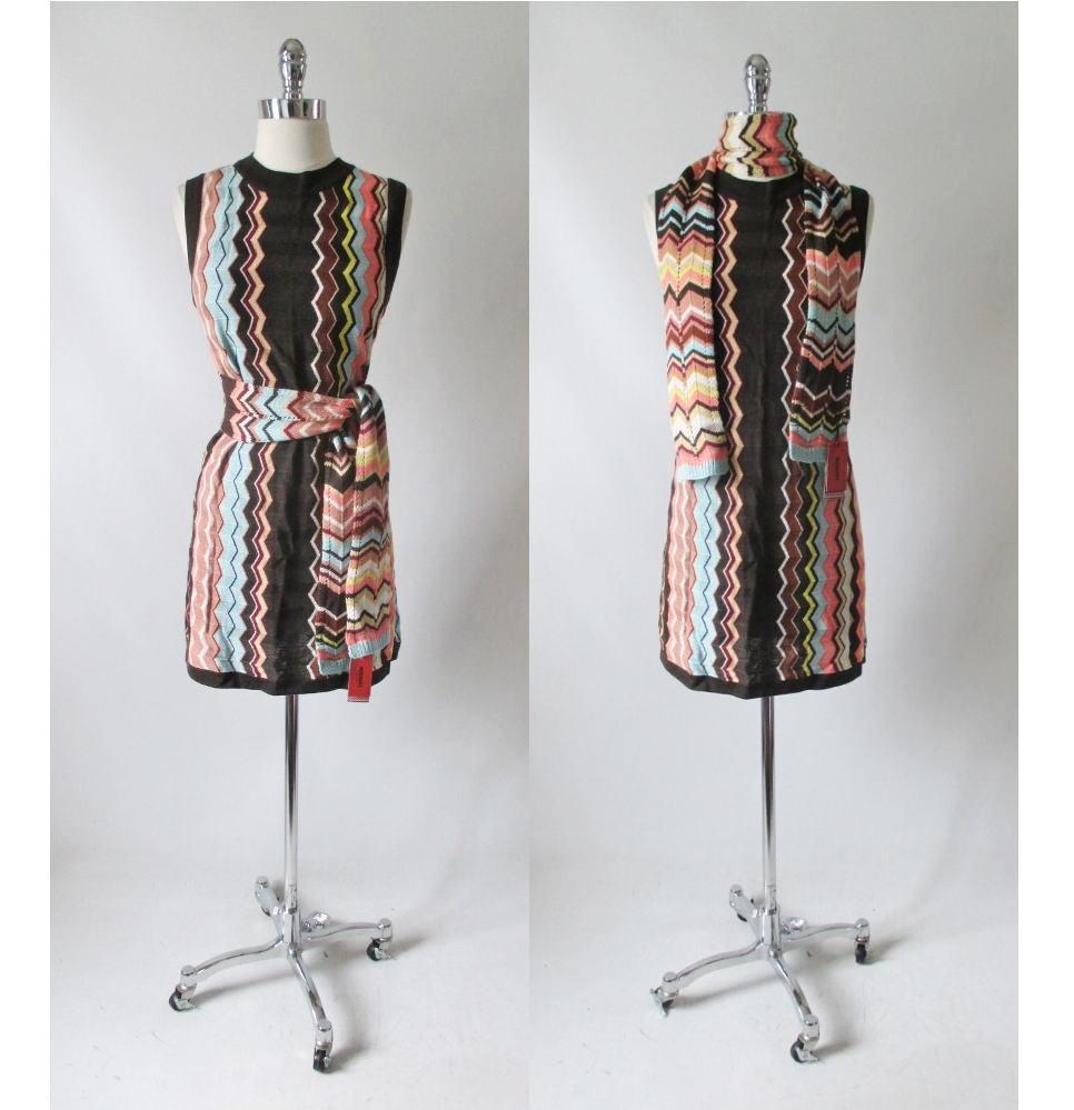 Vintage 60's Style Missoni Zig Zag Knit Mini Shift Dress & Scarf L