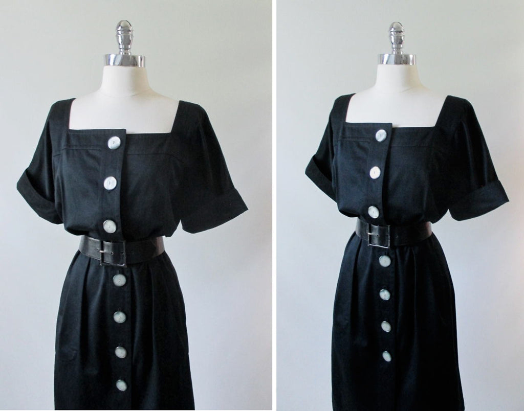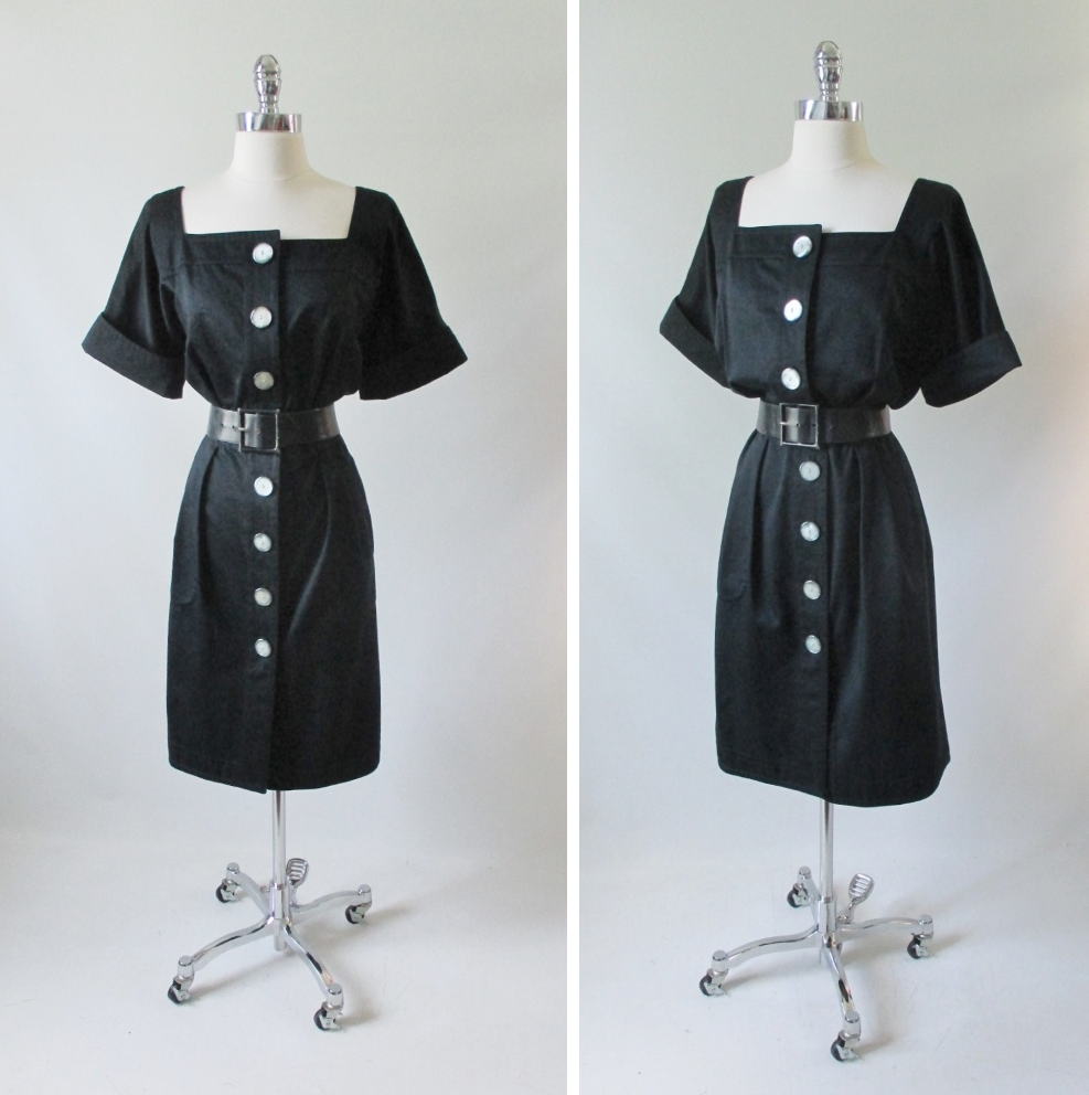 Vintage 80's Yves Saint Laurent Rive Gauche Button Up Dress NOS M