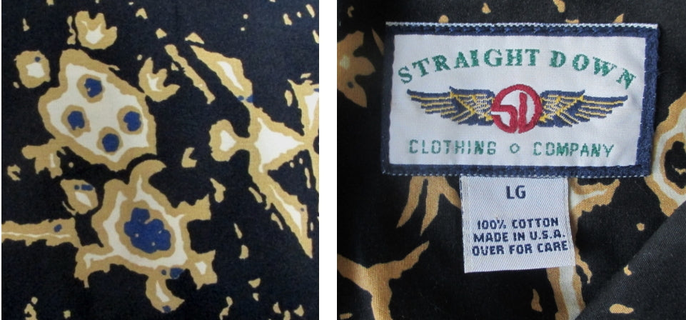 A Hawaiian shirt with a unique print on rows of black and off-white.