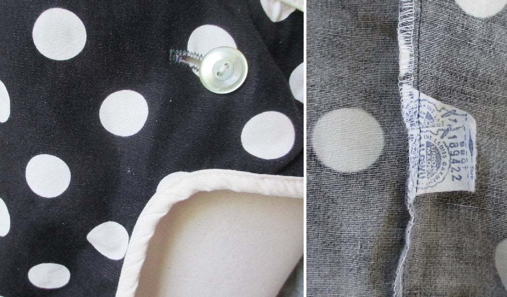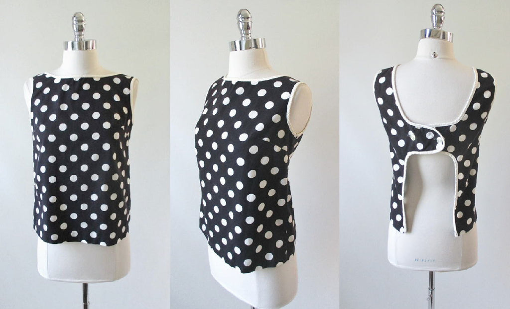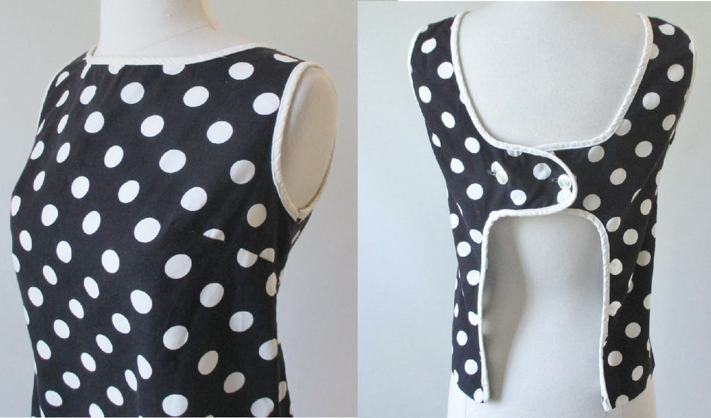 Vintage 60's Black White Polka Dot Cut Out Button Back Top Shirt S
