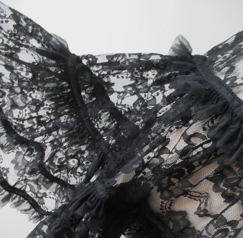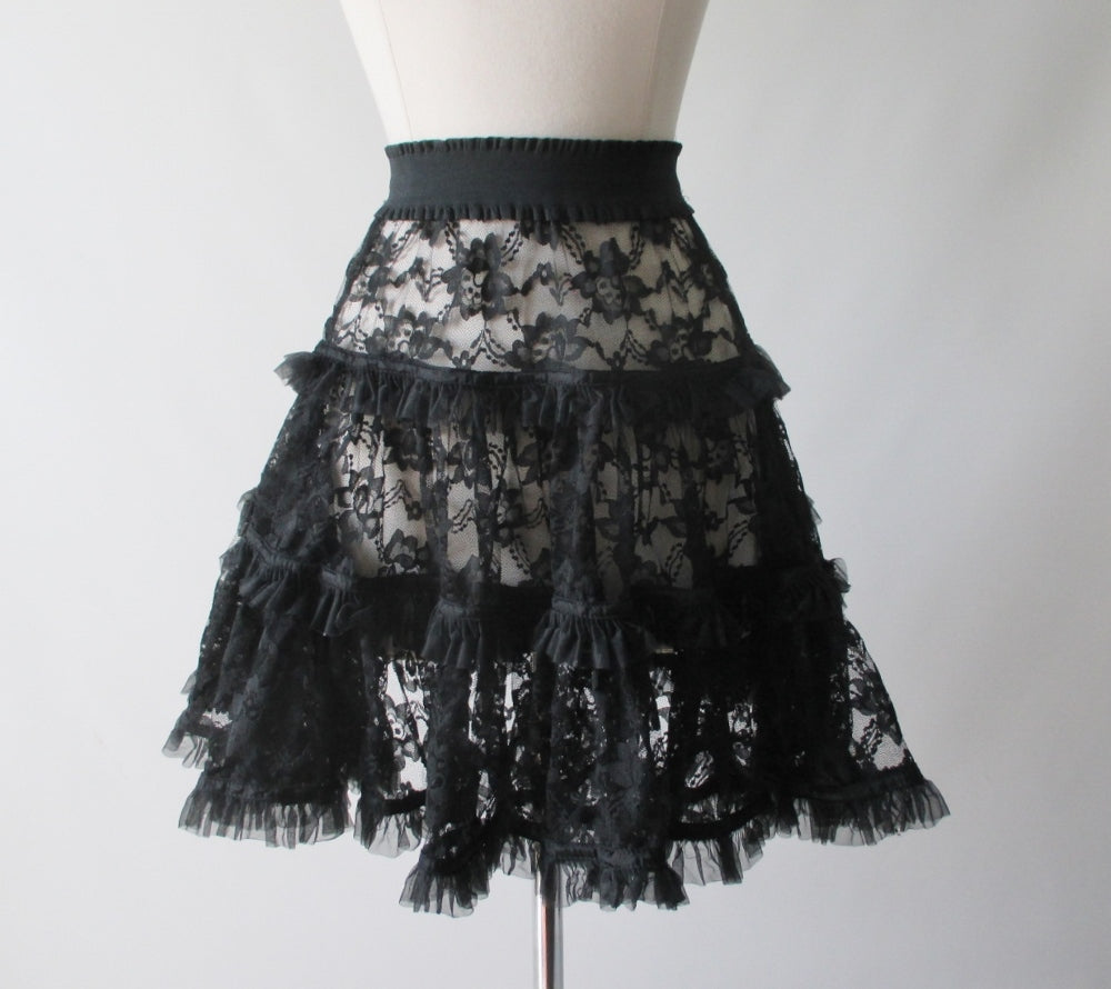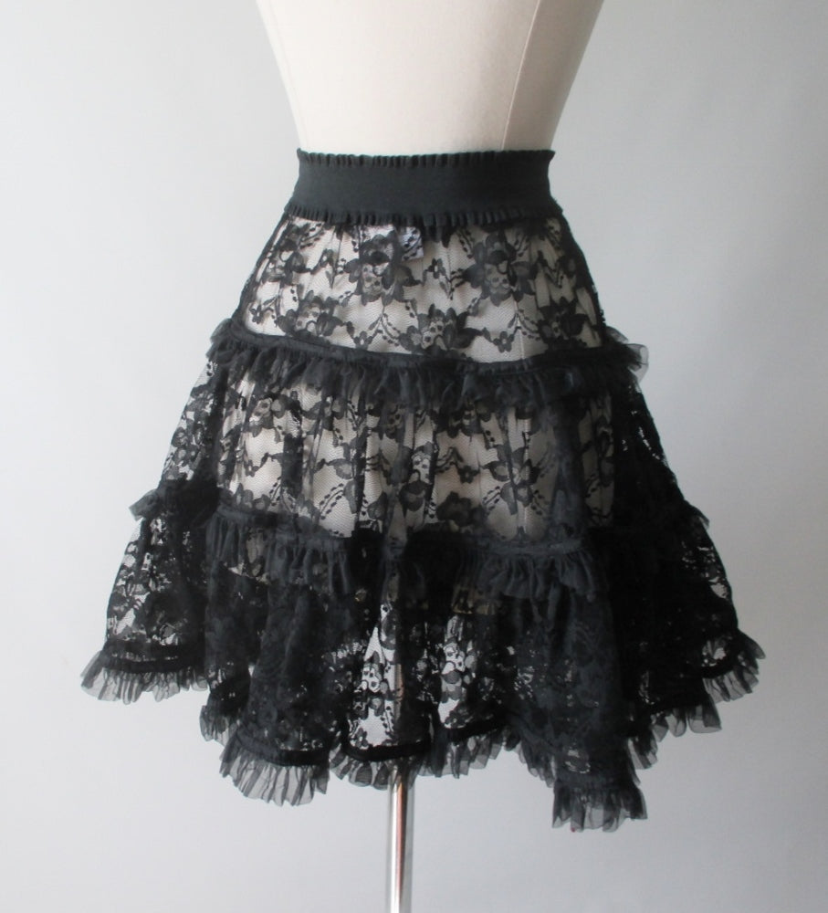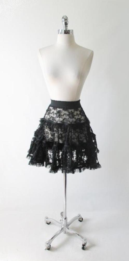• 80's Karen Alexander Black Lace Mini Slip Petticoat Skirt S