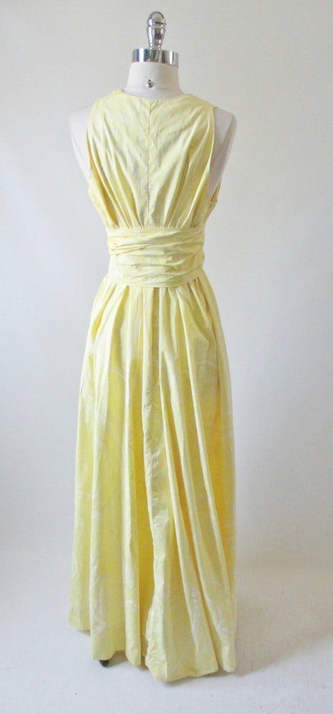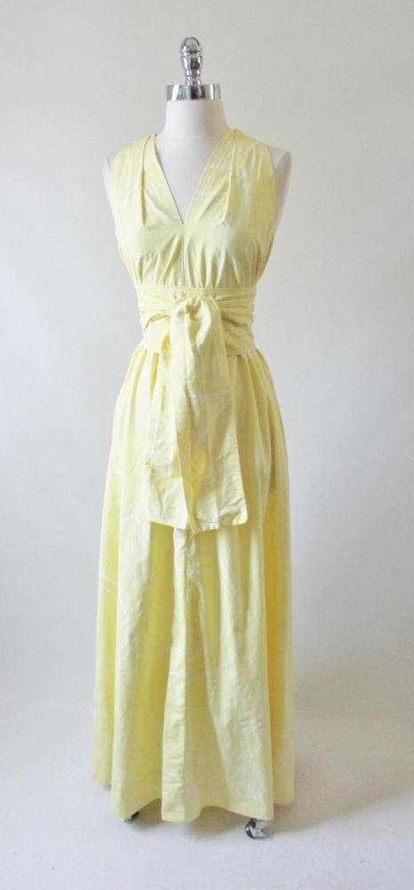 • Vintage 70's Sweeping Maxi Dress Matching Obi Sash Gown L