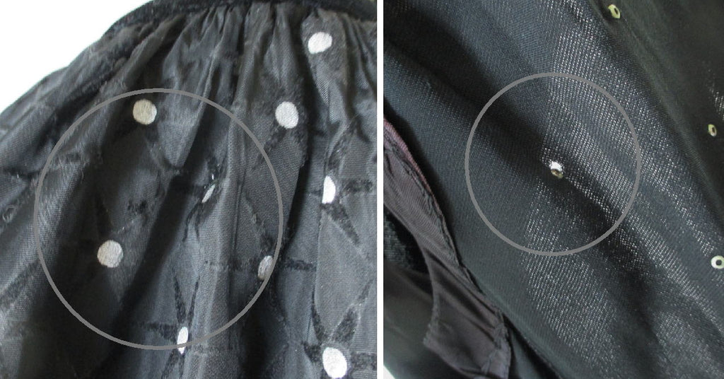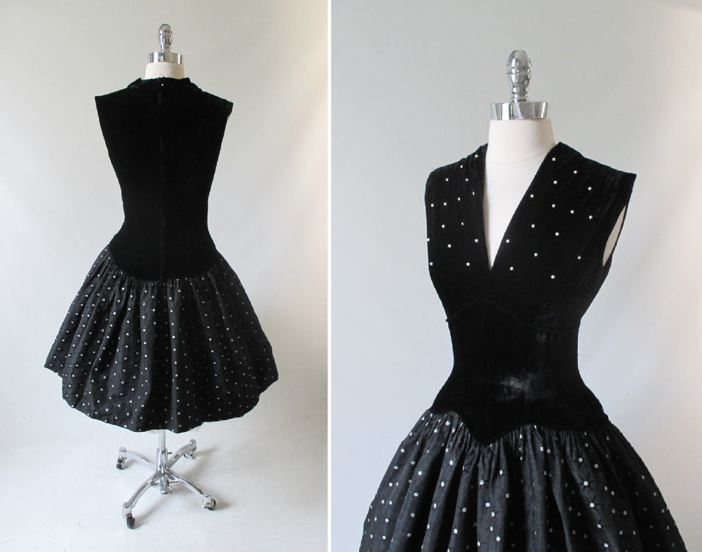 • Vintage 50's Black Velvet Pearl & Flocked Starburst Party Dress M