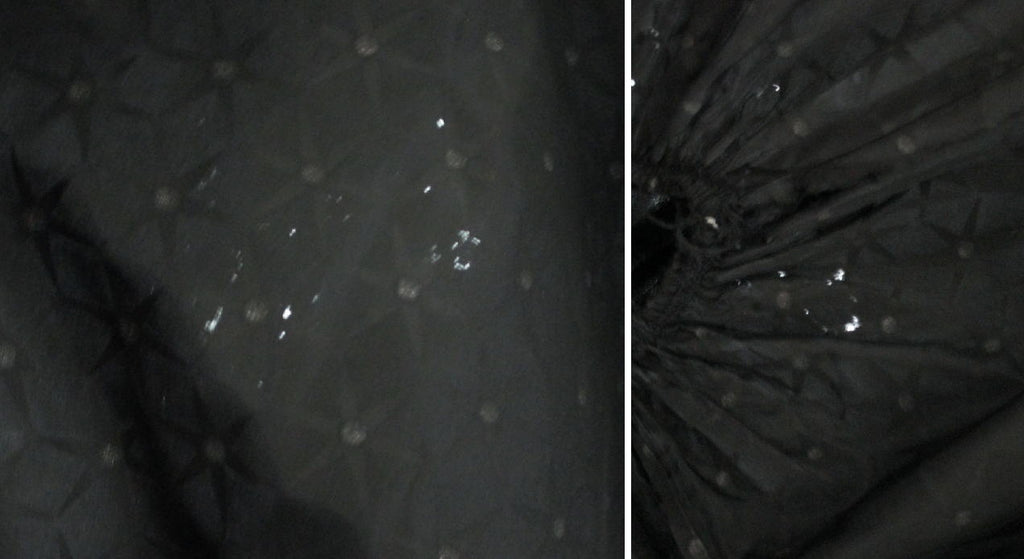 Flocked starburst, full taffeta skirting with white centers