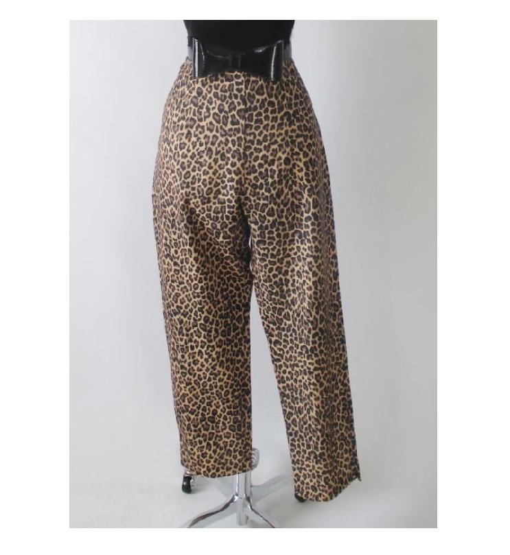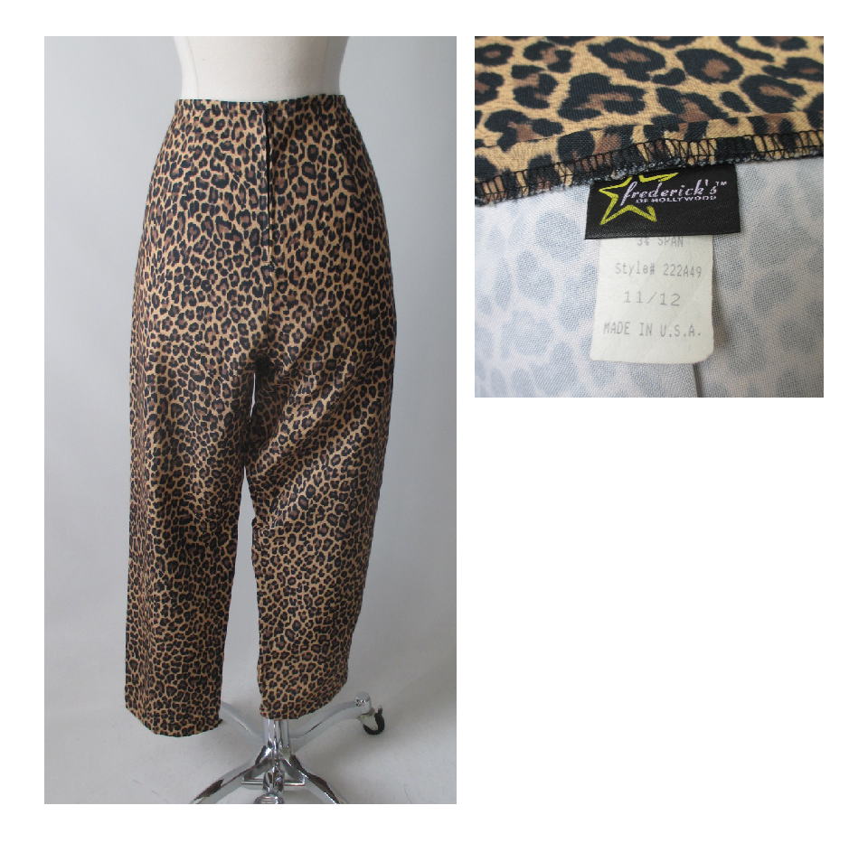 A vintage 90's pair of retro leopard pants by Fredericks Of Hollywood