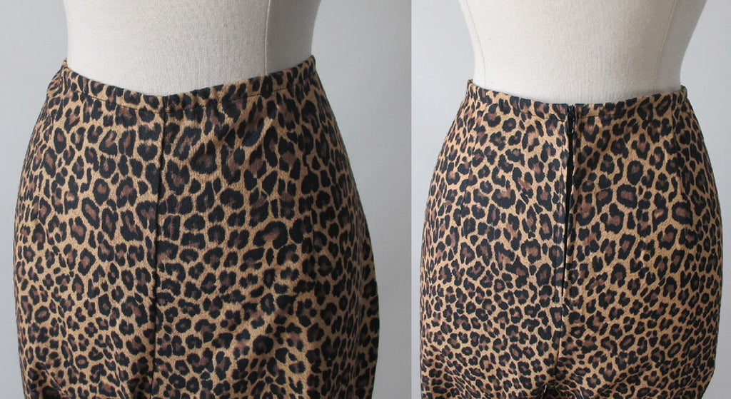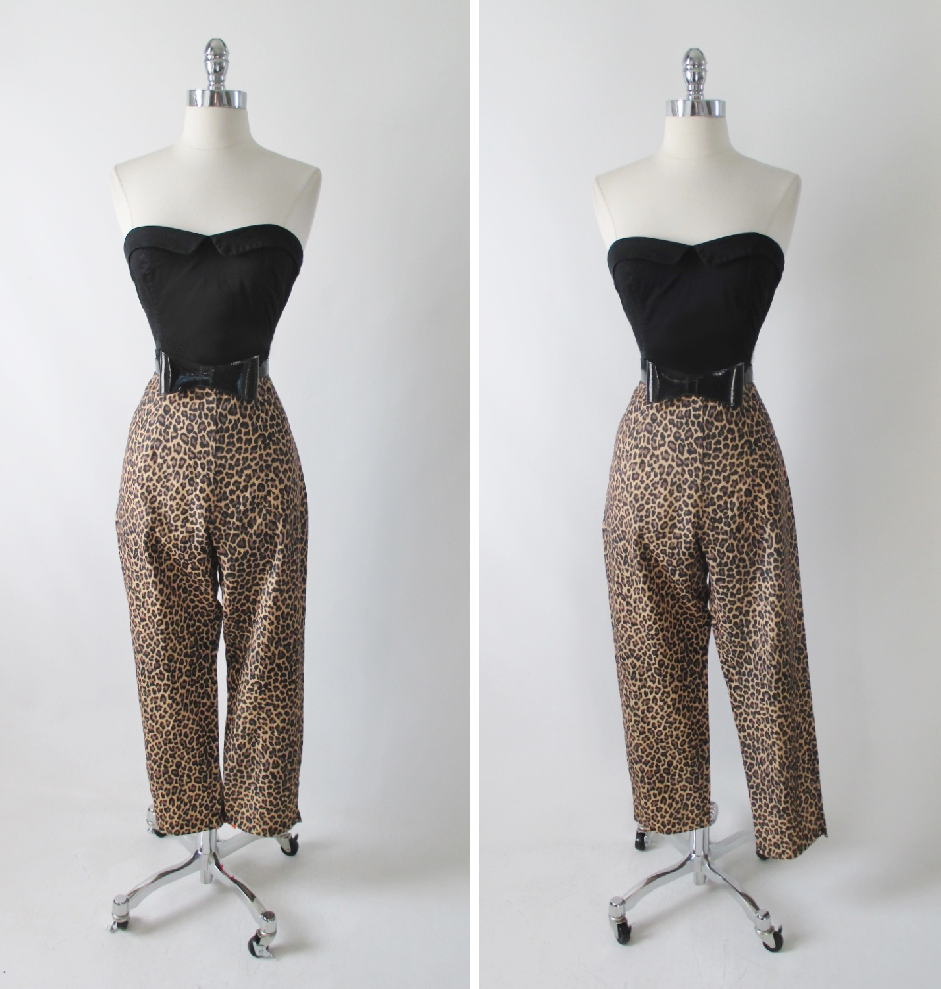 • Vintage 50's Bombshell Leopard Print Fredericks Of Hollywood Cigarette Pants L