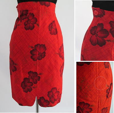 • Vintage 50's Bombshell Pinup Red Hawaiian Bad Girl Wiggle Pencil Tiki Skirt S