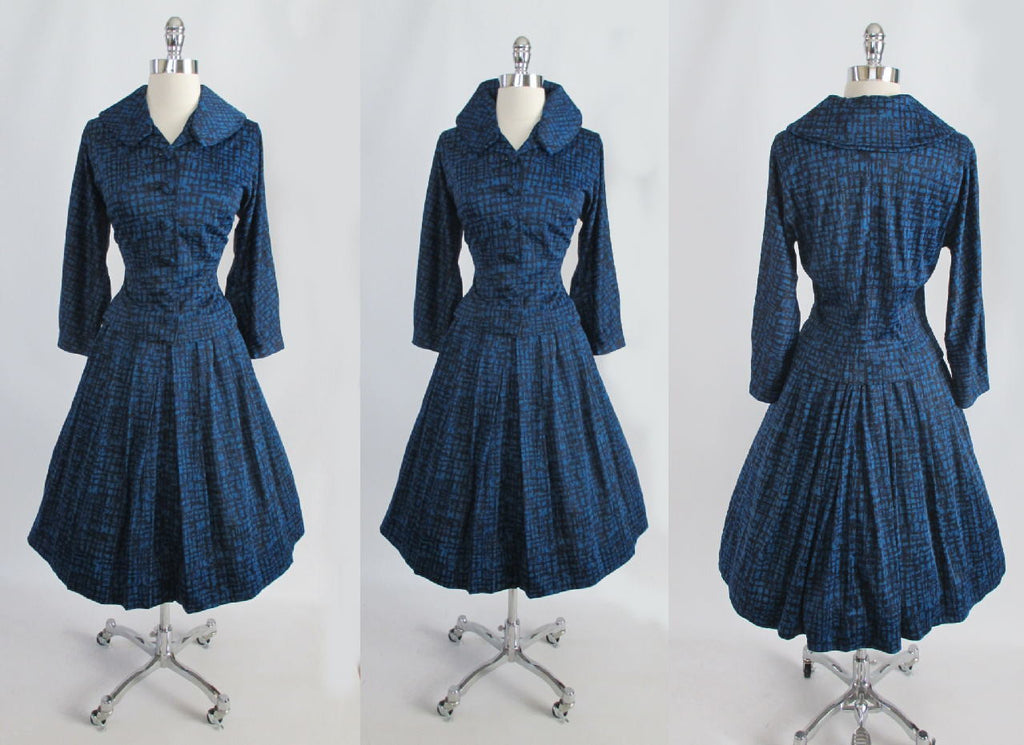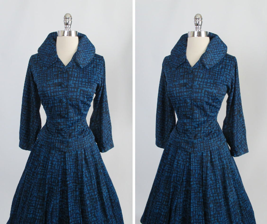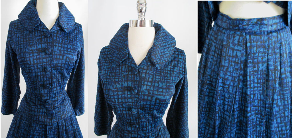 • Vintage 50's New Look Blue Atomic Jacket Top / Skirt Dress Suit Set