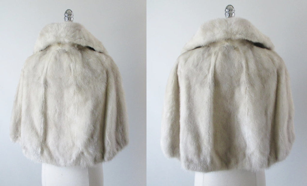 • Vintage 50's Tourmaline Gray Cream Mink Shrug Jacket Wrap